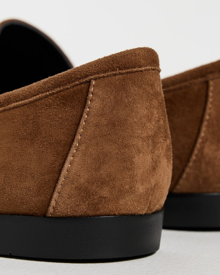 round toe constructed slip on loafer made with brushed kid suede.