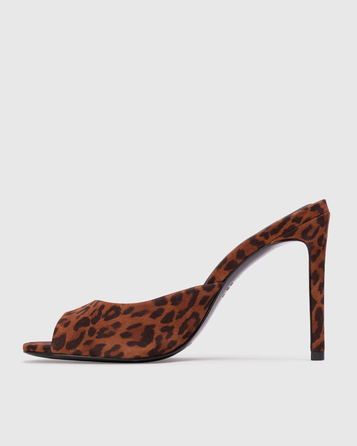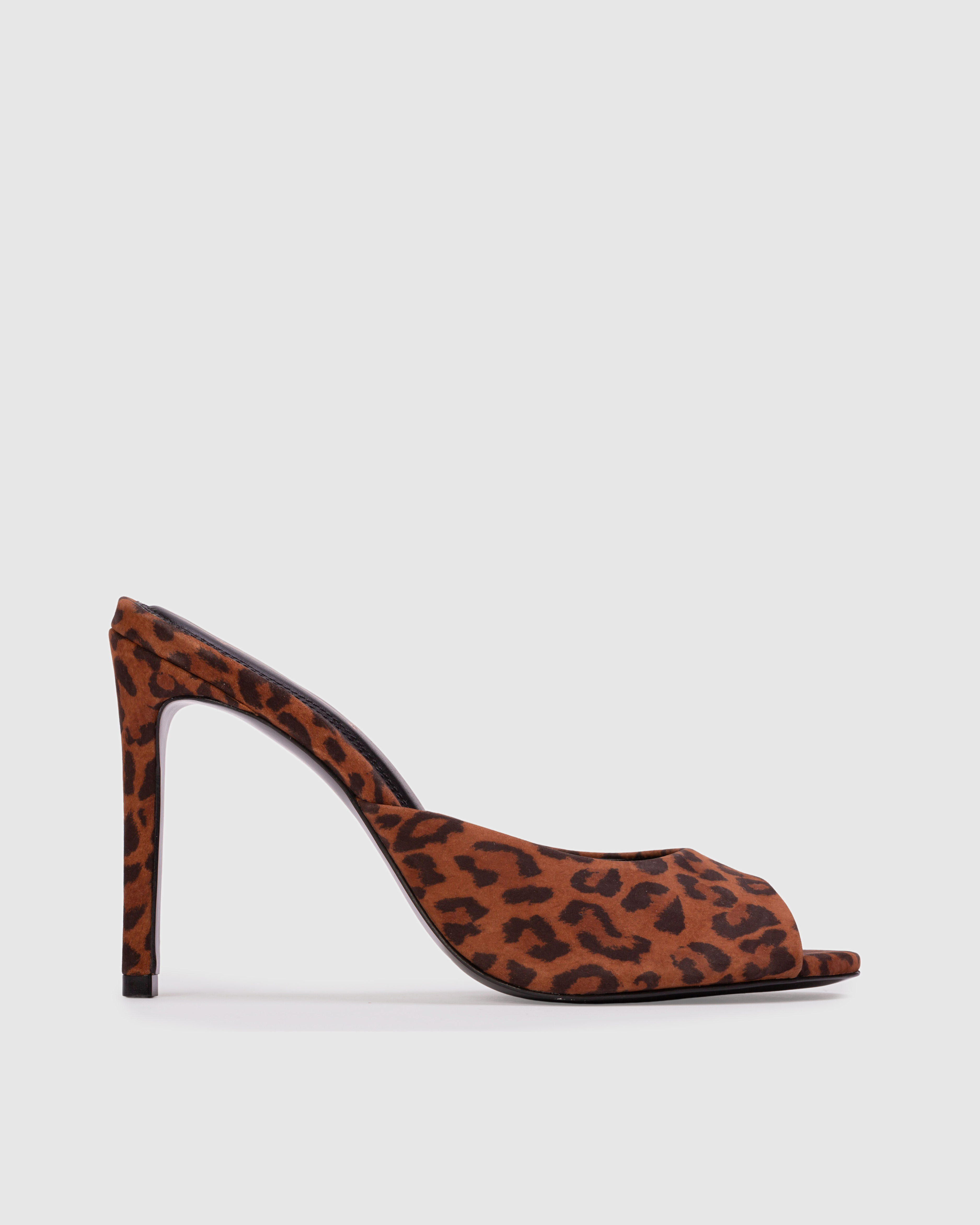 Round toe slipper mule, set on a straight stiletto heel. Made with nubuck.