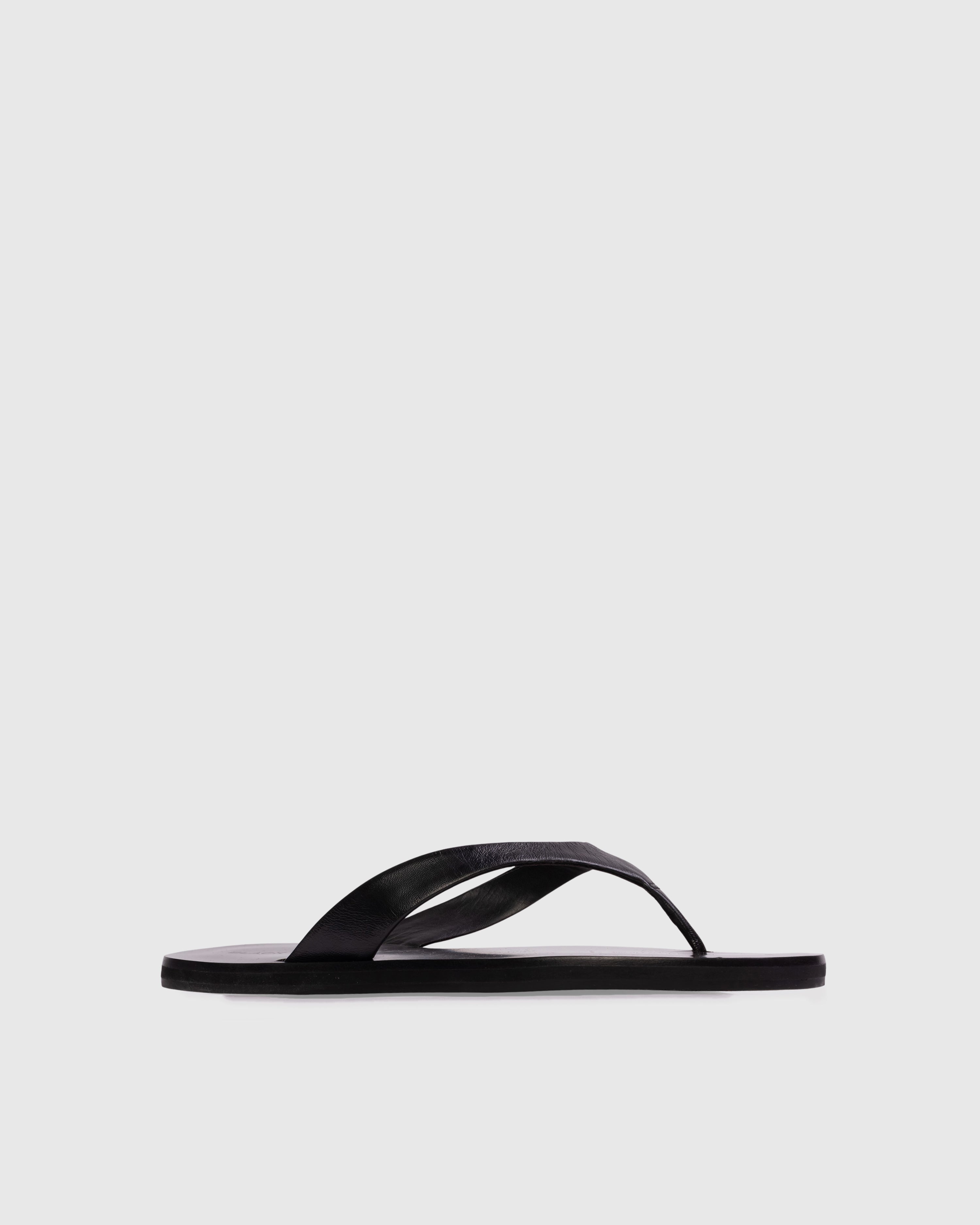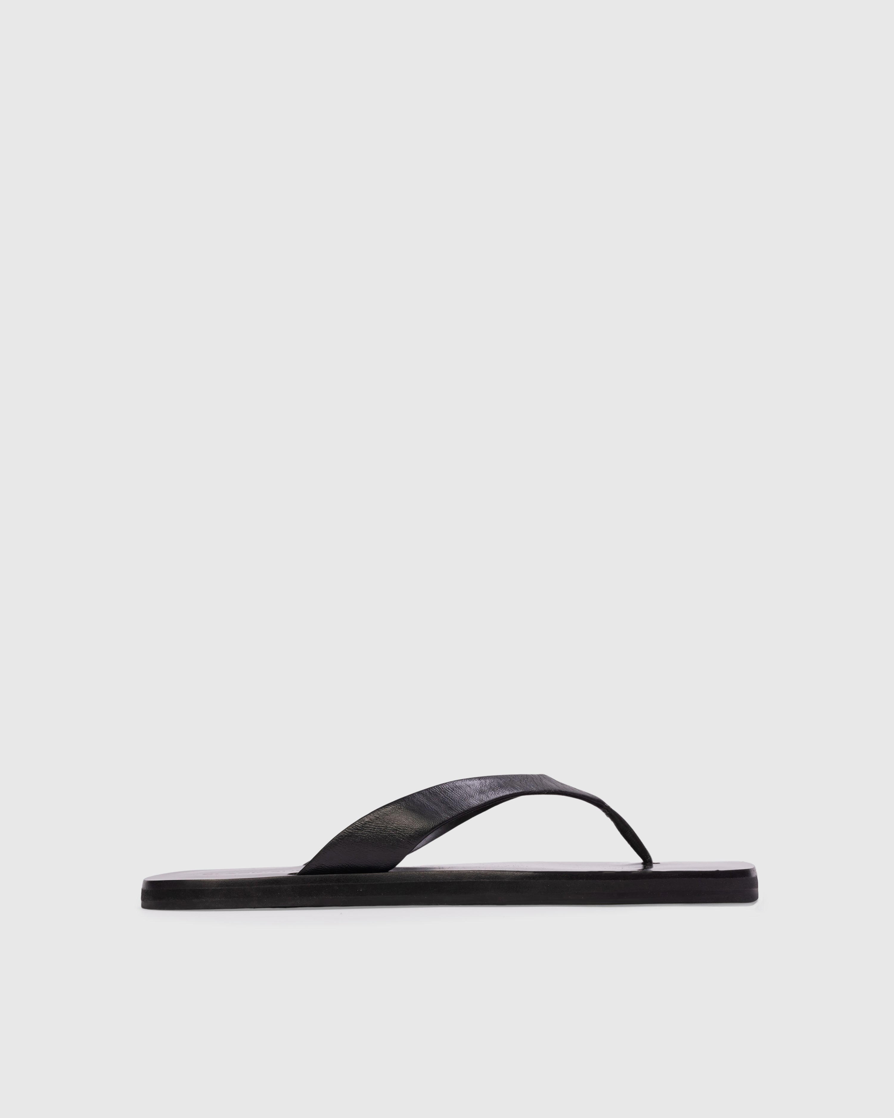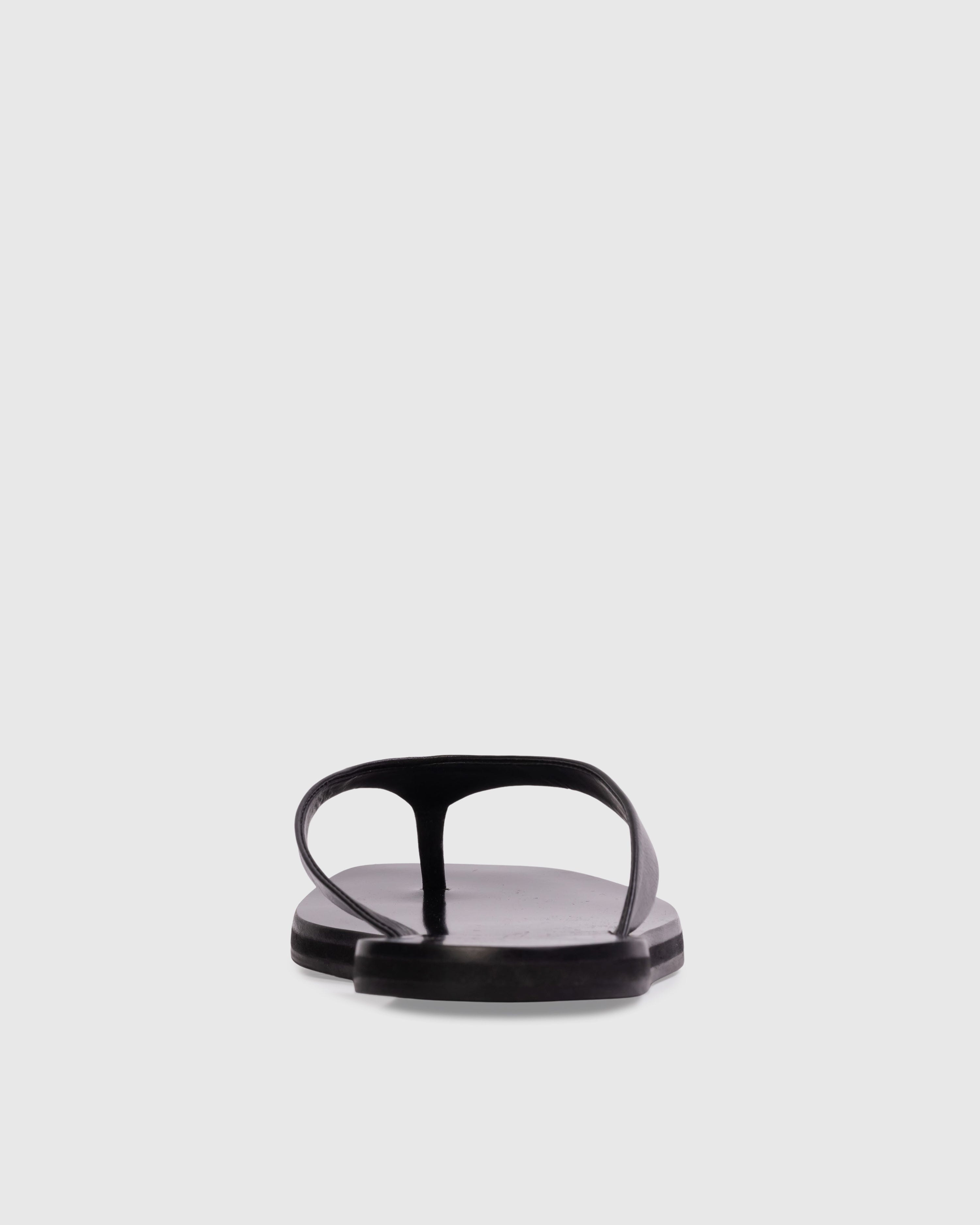 Square toe flip flop sandal, set on a leather sole. Made with smooth buffed leather.