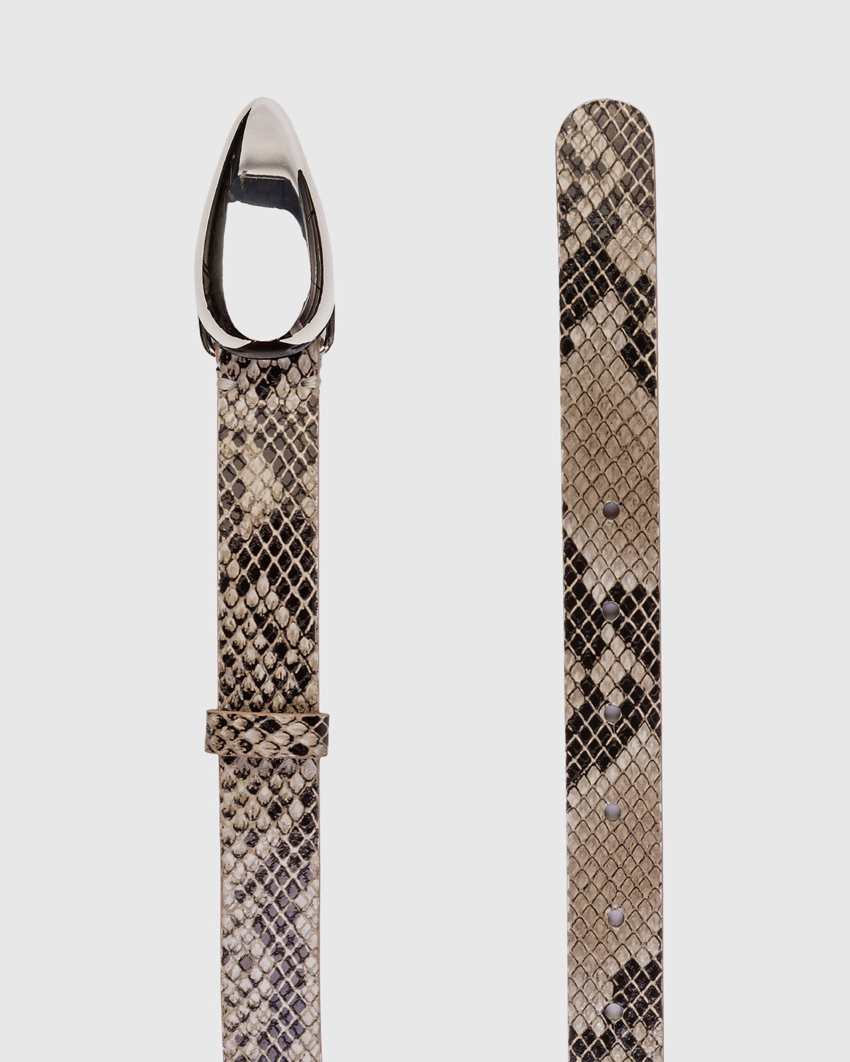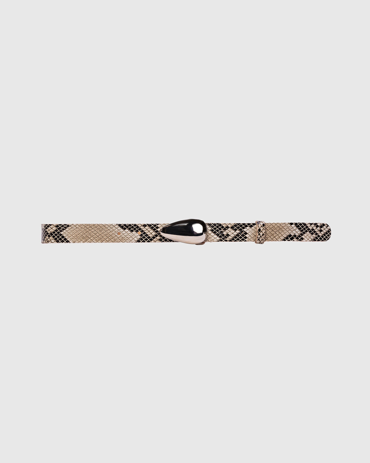Color + Material: Peyote Snake Leather with silver plated hardware.
