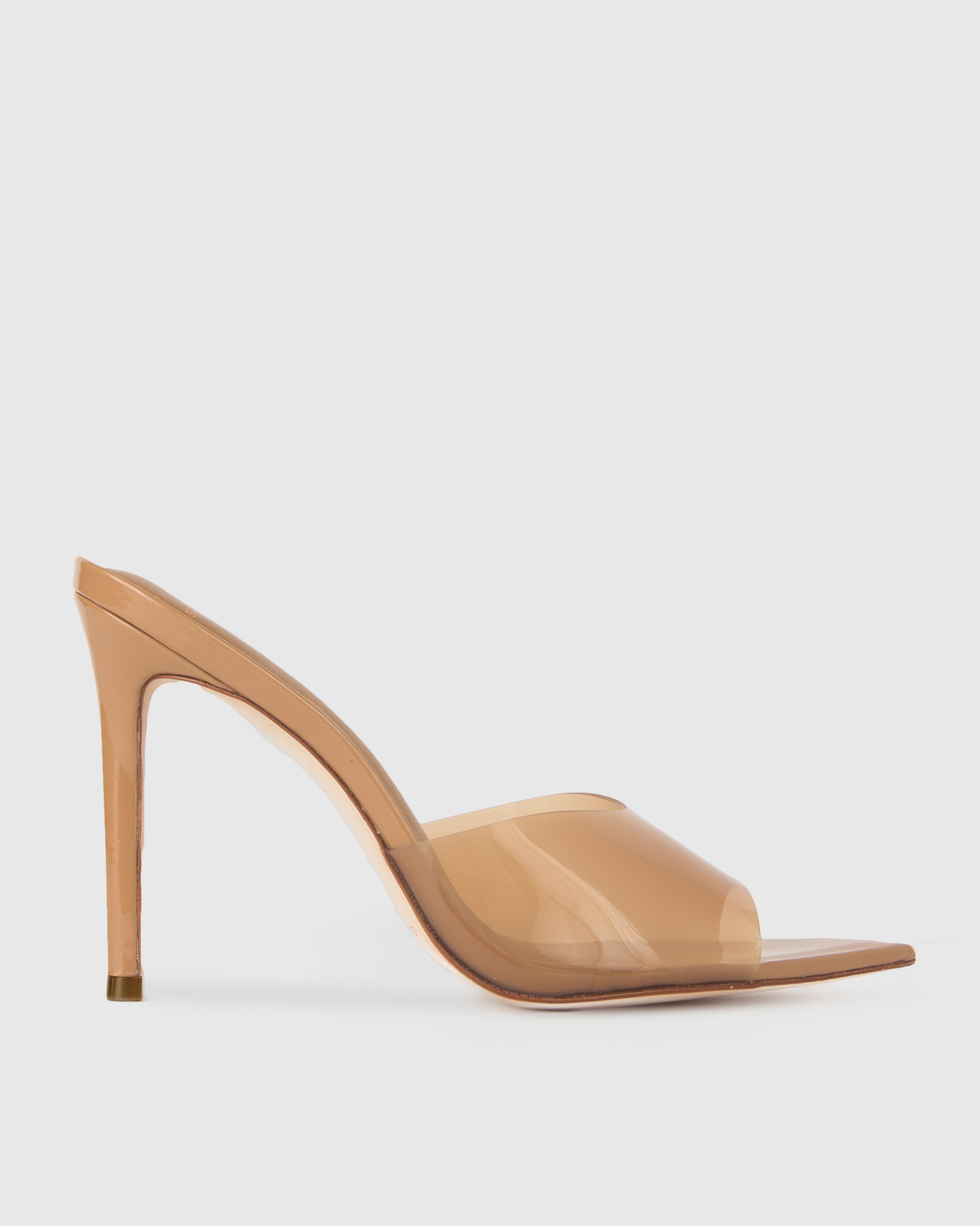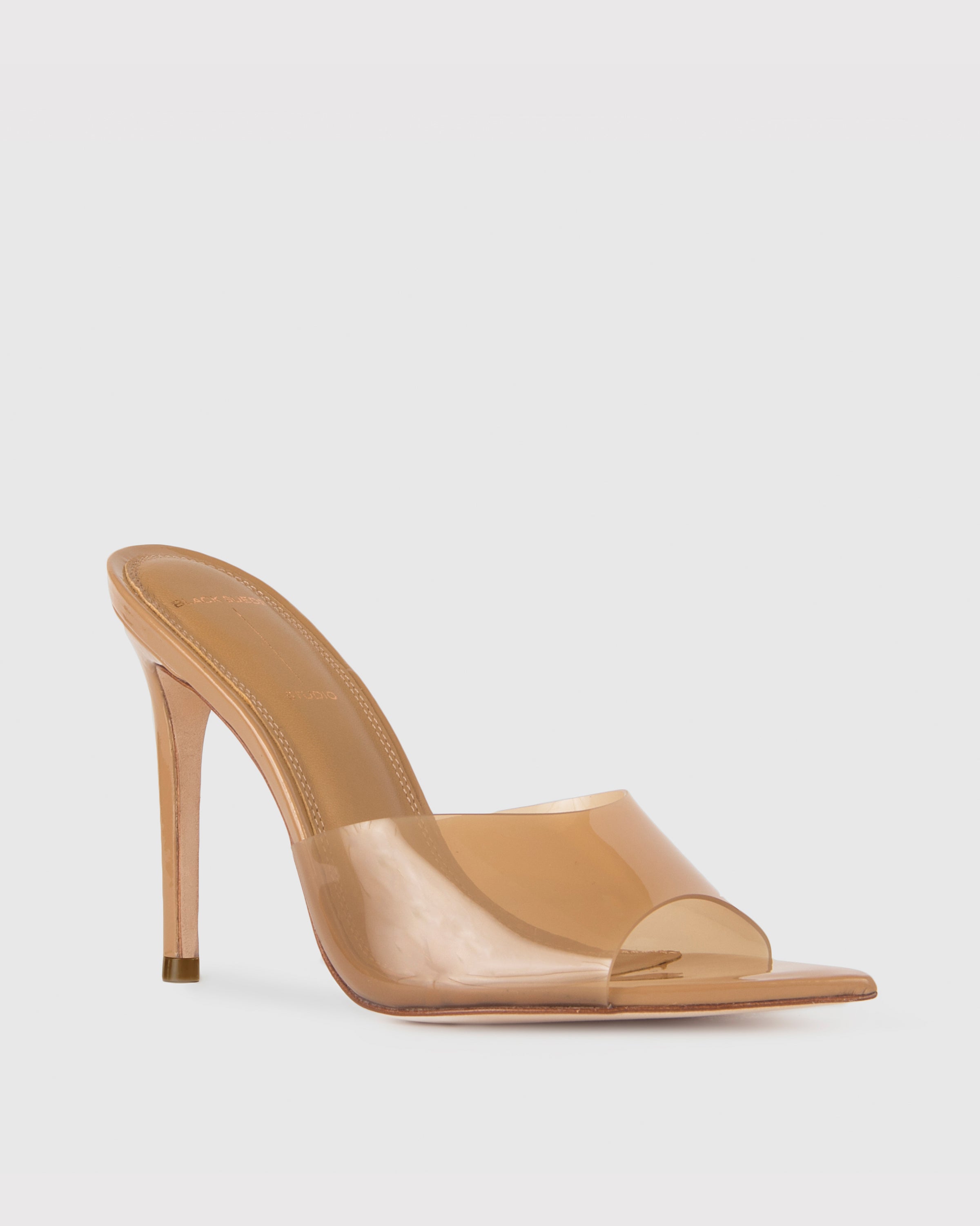 Pointy Toe High Heel Slip-On Sandal with PVC Upper