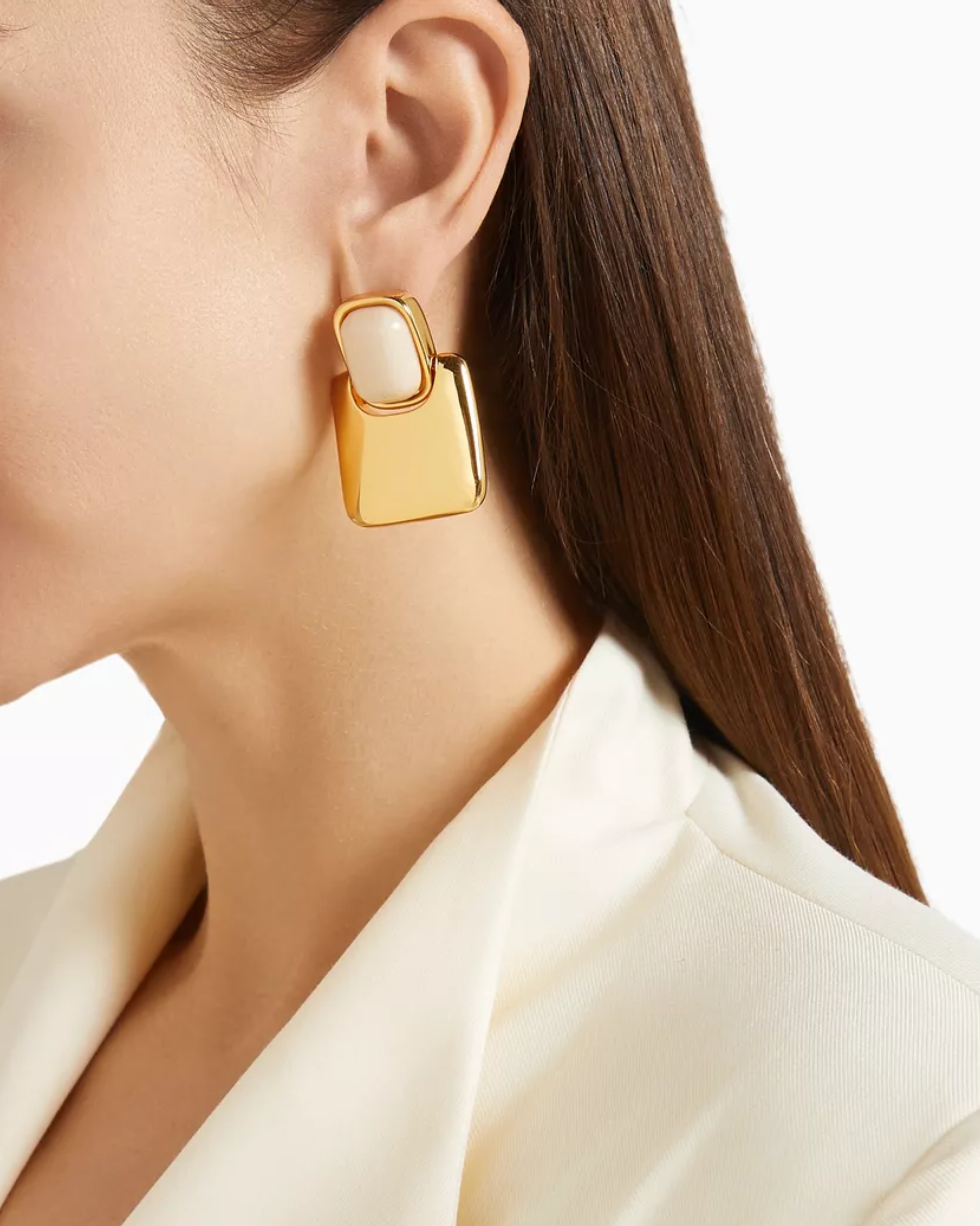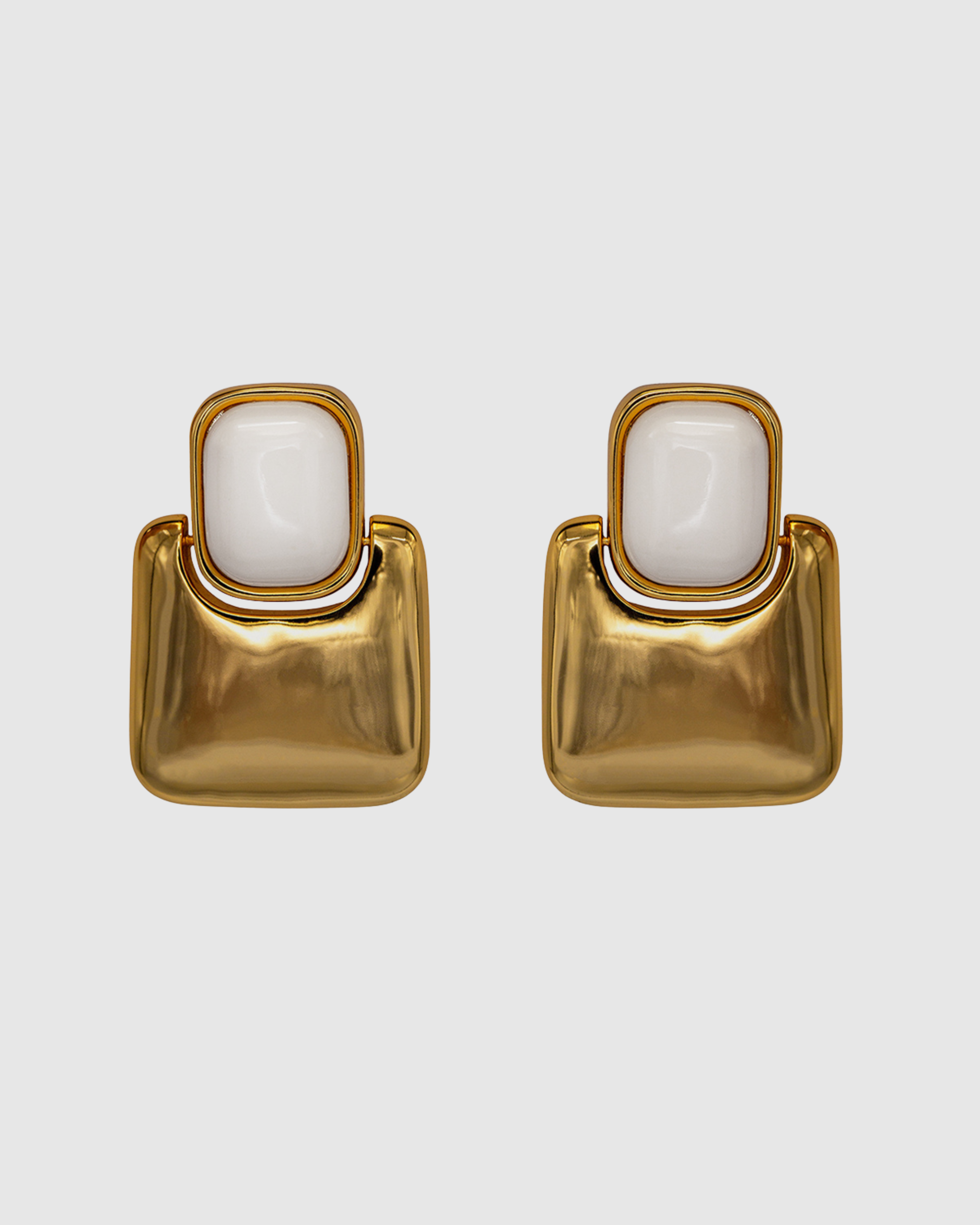 Set of pendant earrings with resin square pendant. Made with premium 18k gold-plated brass.