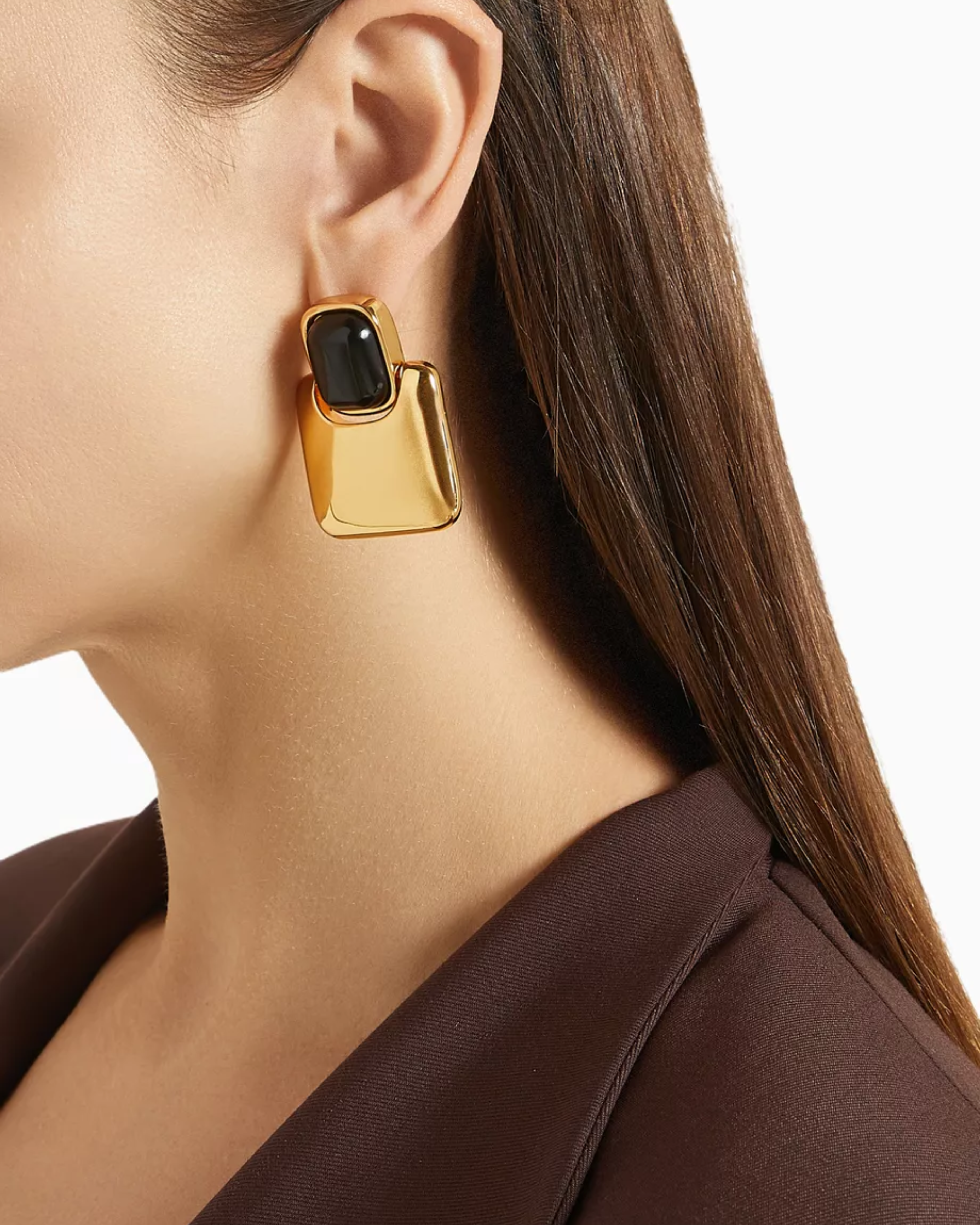 Set of pendant earrings with resin square pendant. Made with premium 18k gold-plated brass.