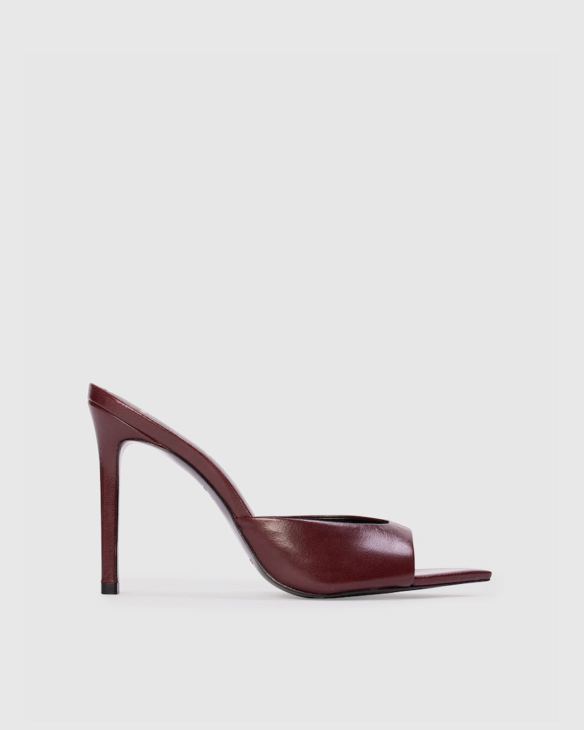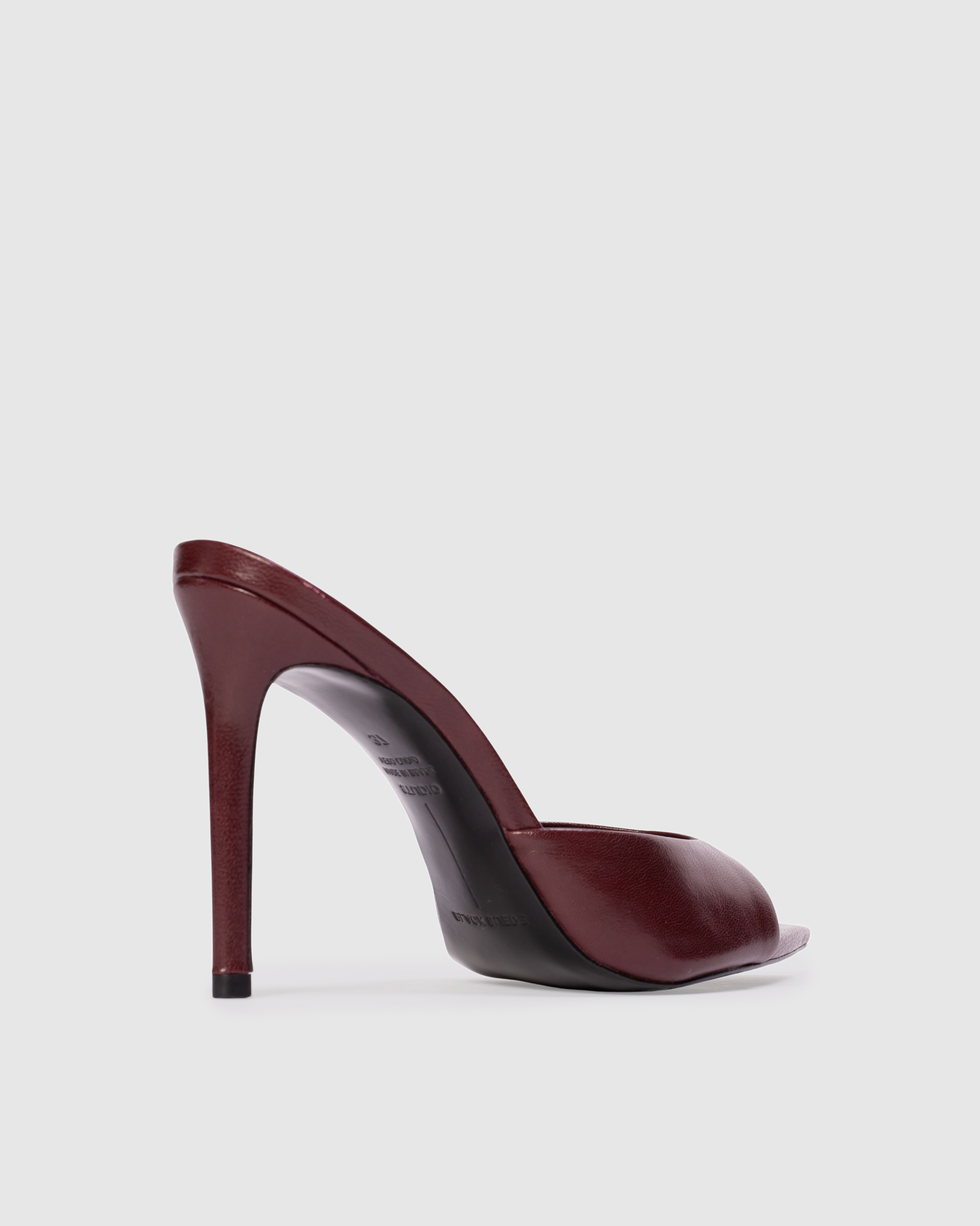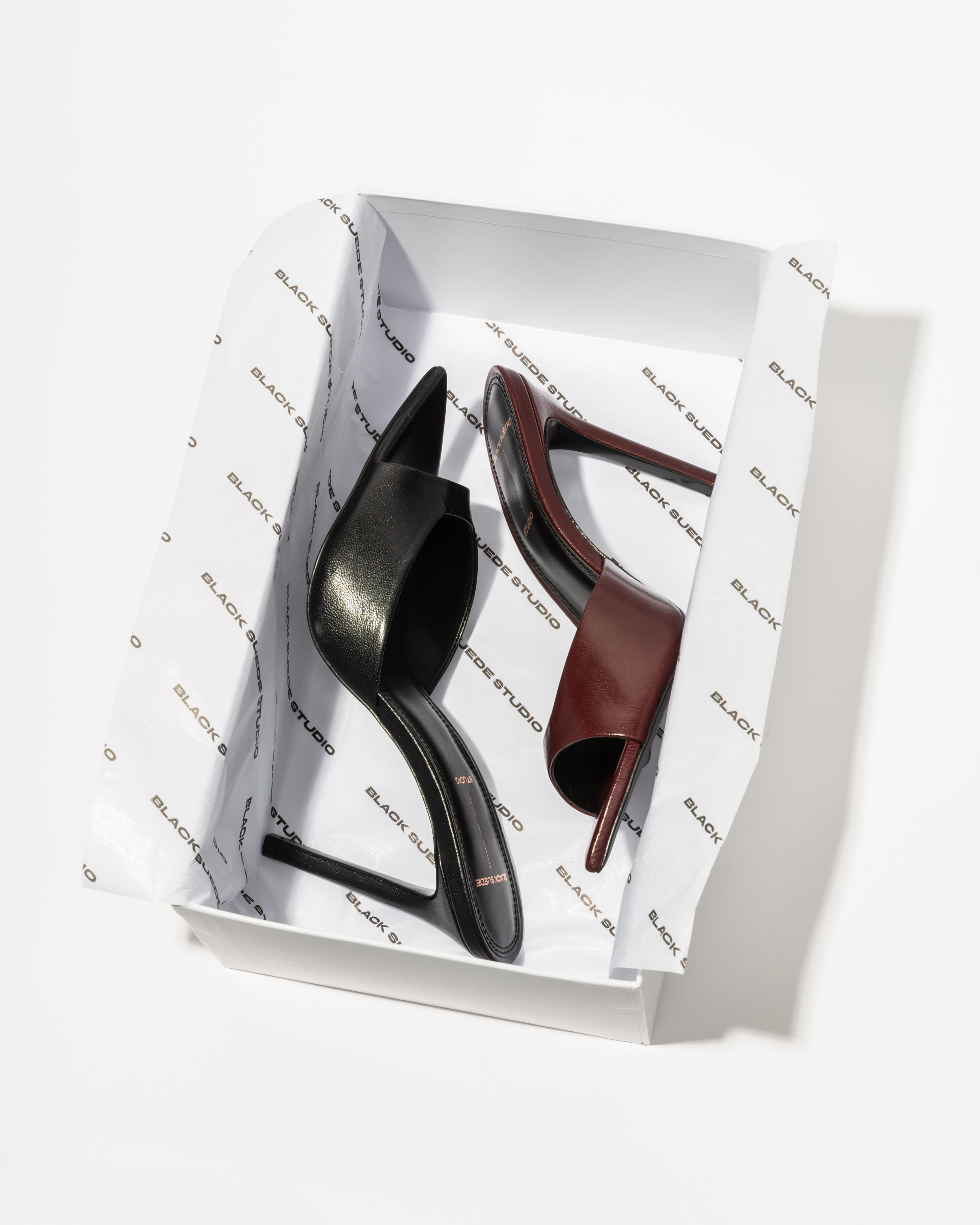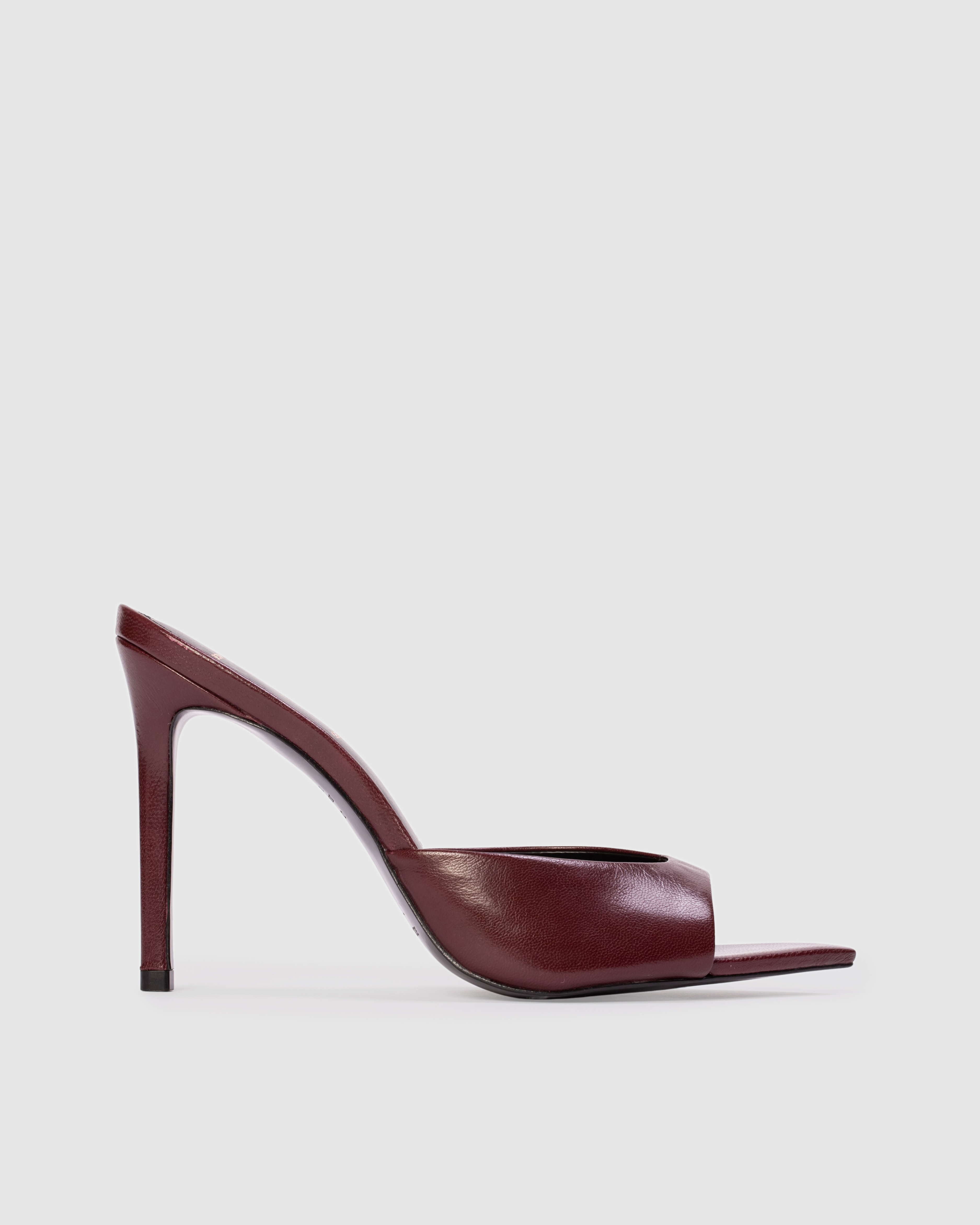 Pointy toe slipper mule, set on a straight stiletto heel. Made with smooth goat leather.