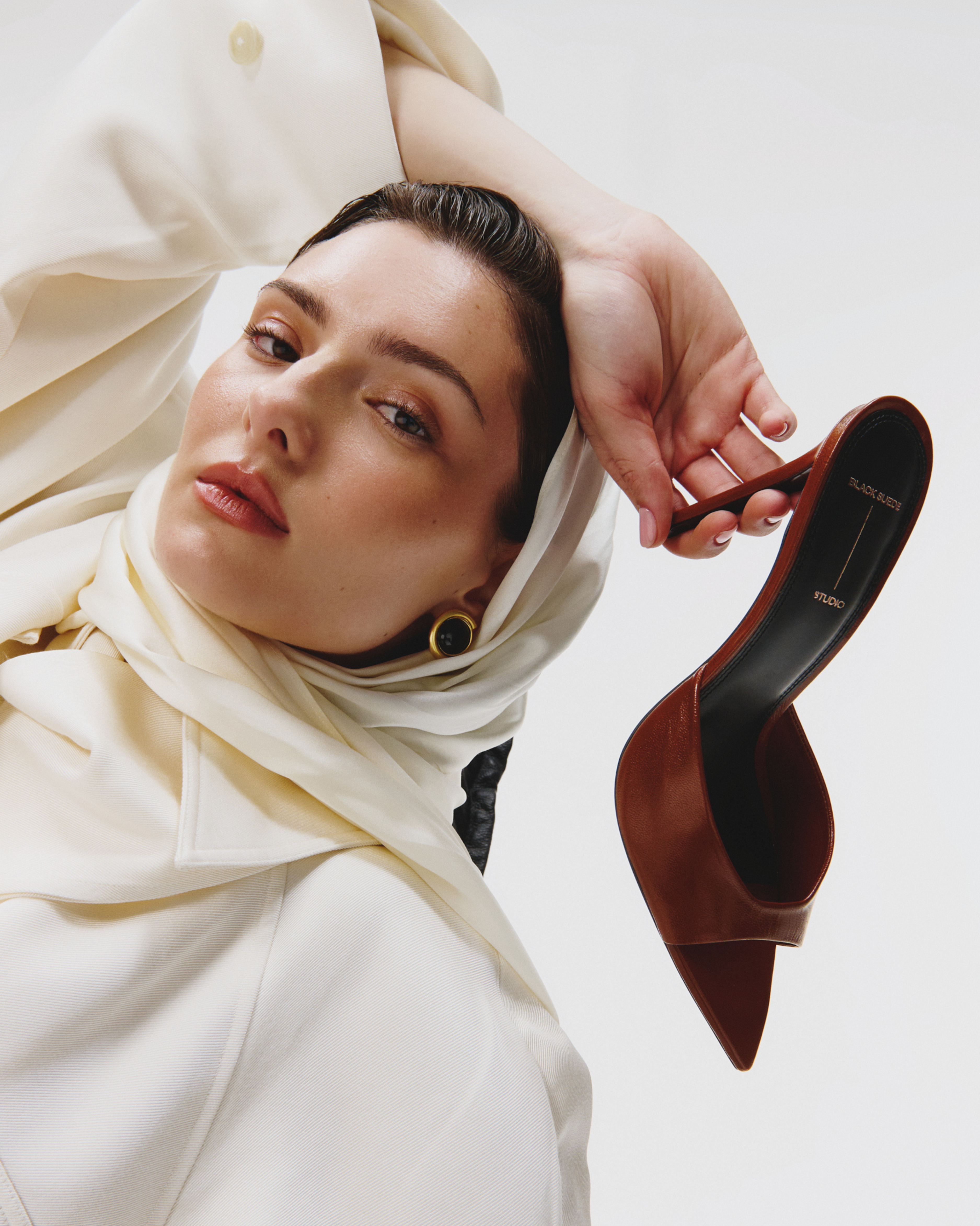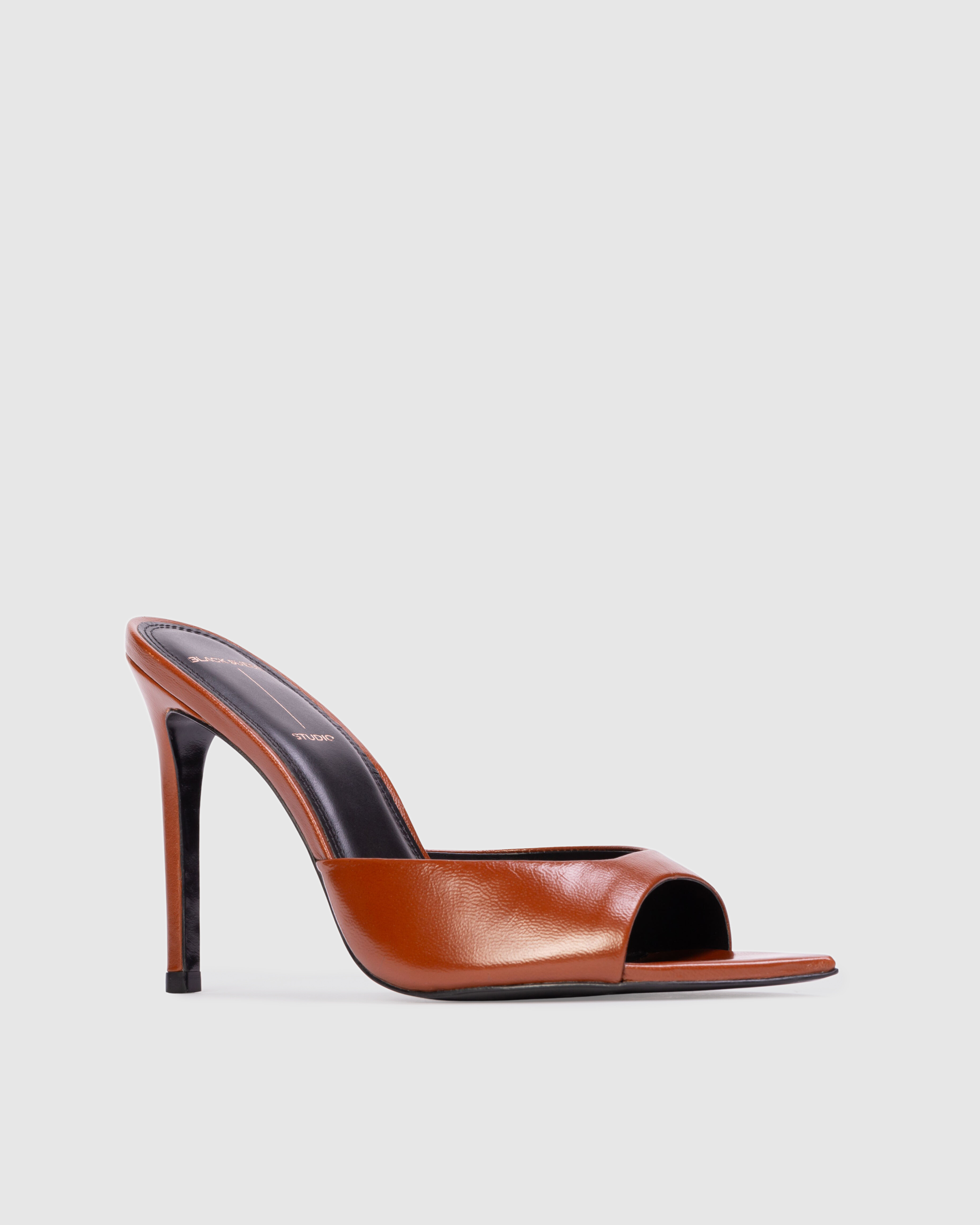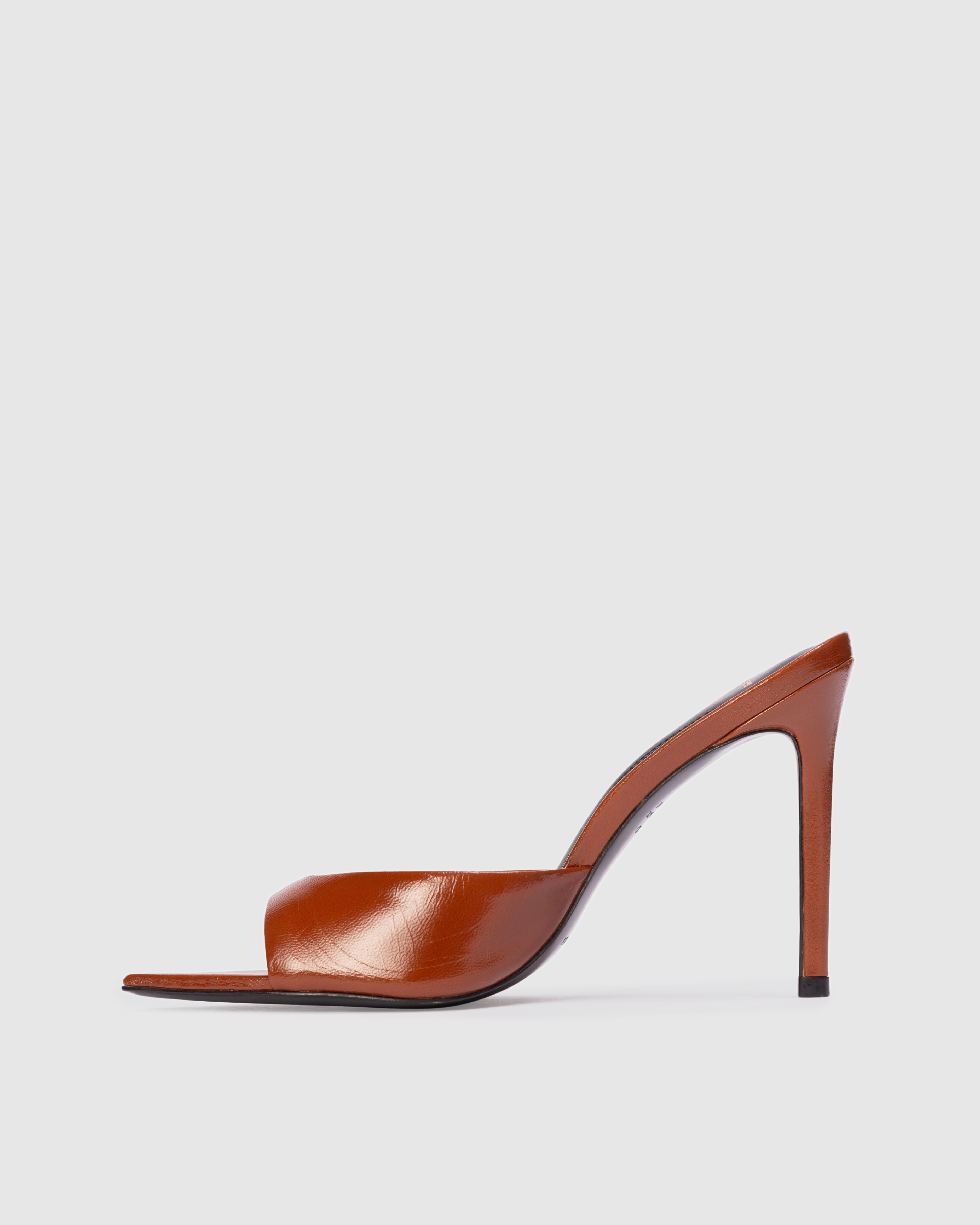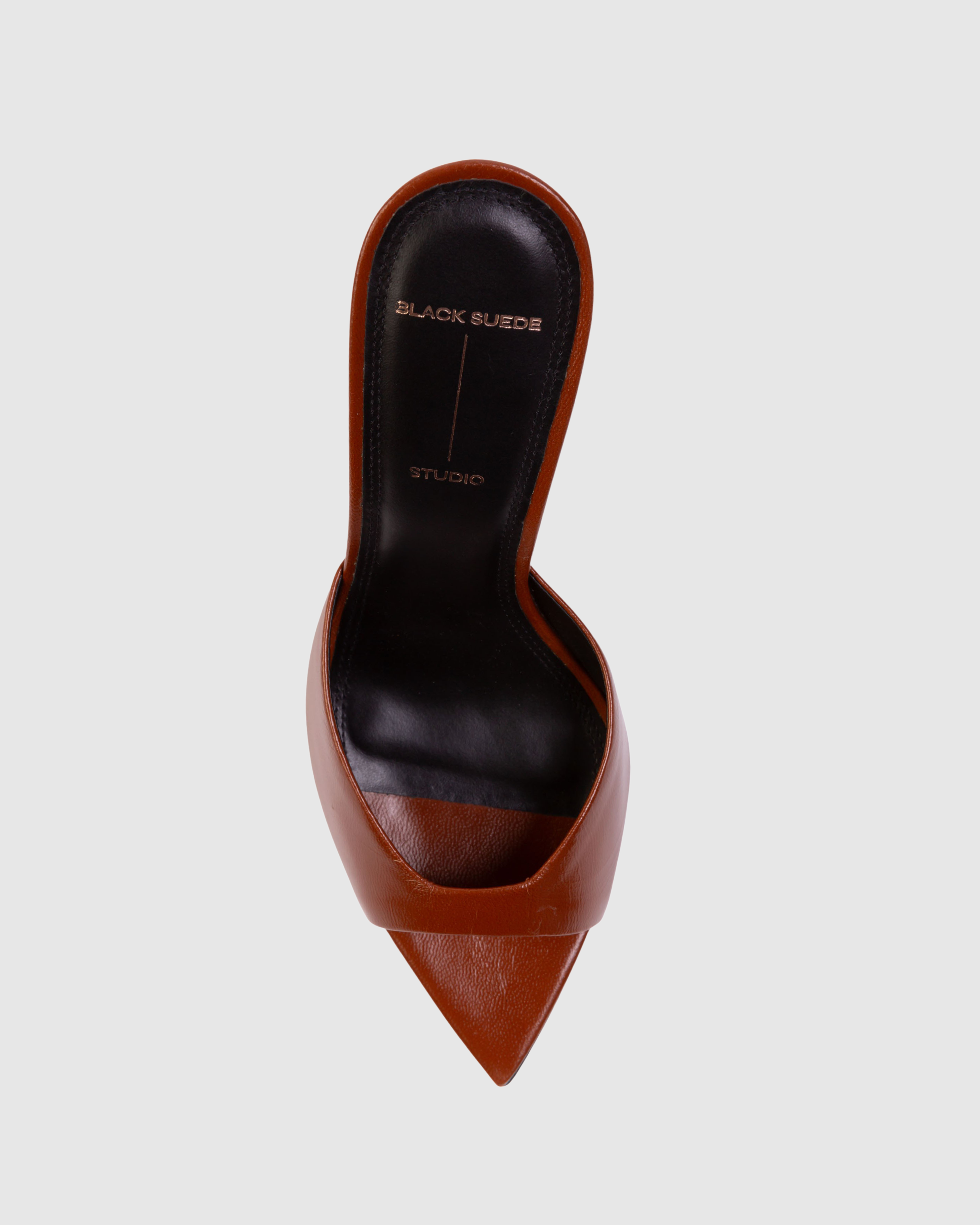Pointy toe slipper mule, set on a straight stiletto heel. Made with smooth goat leather.