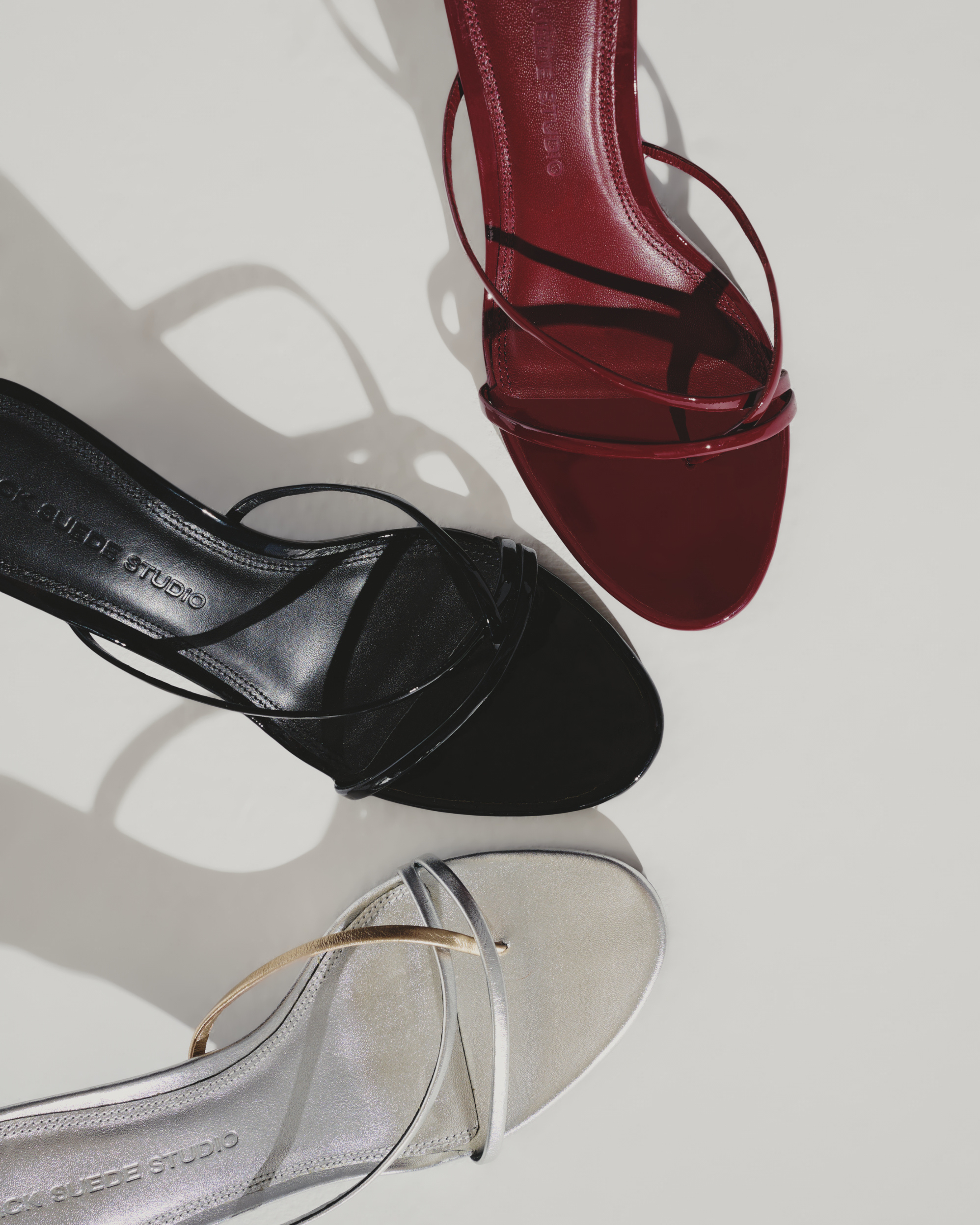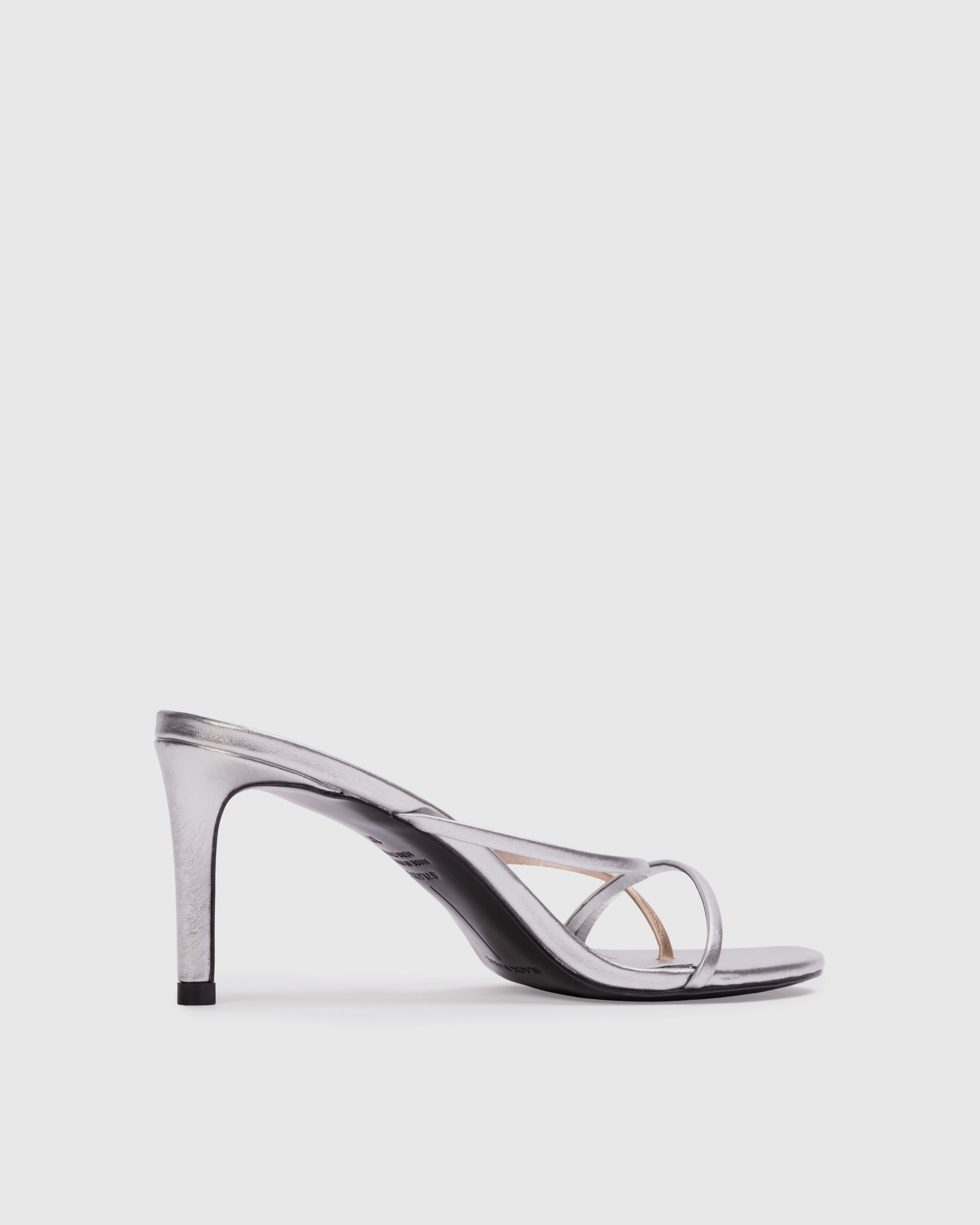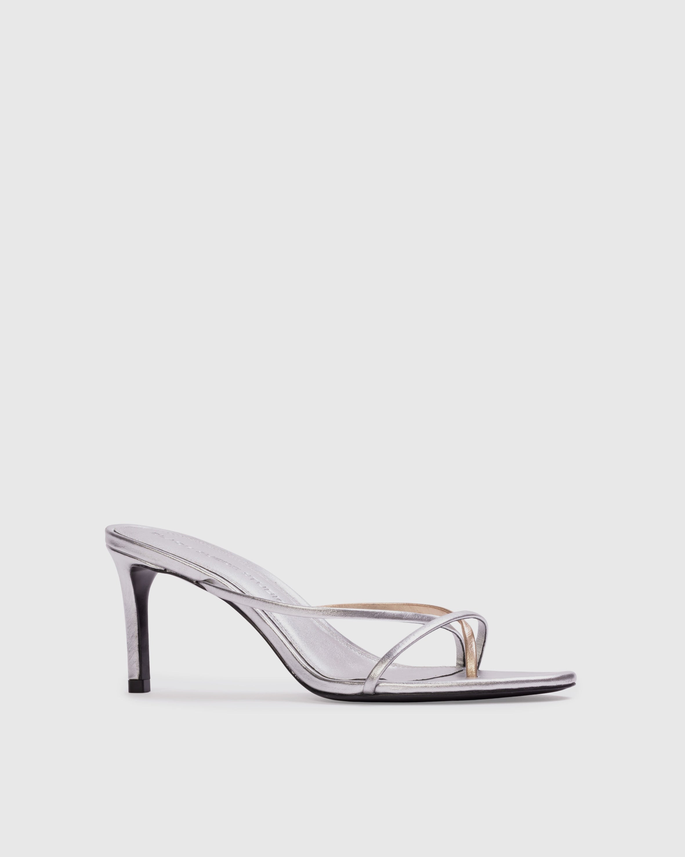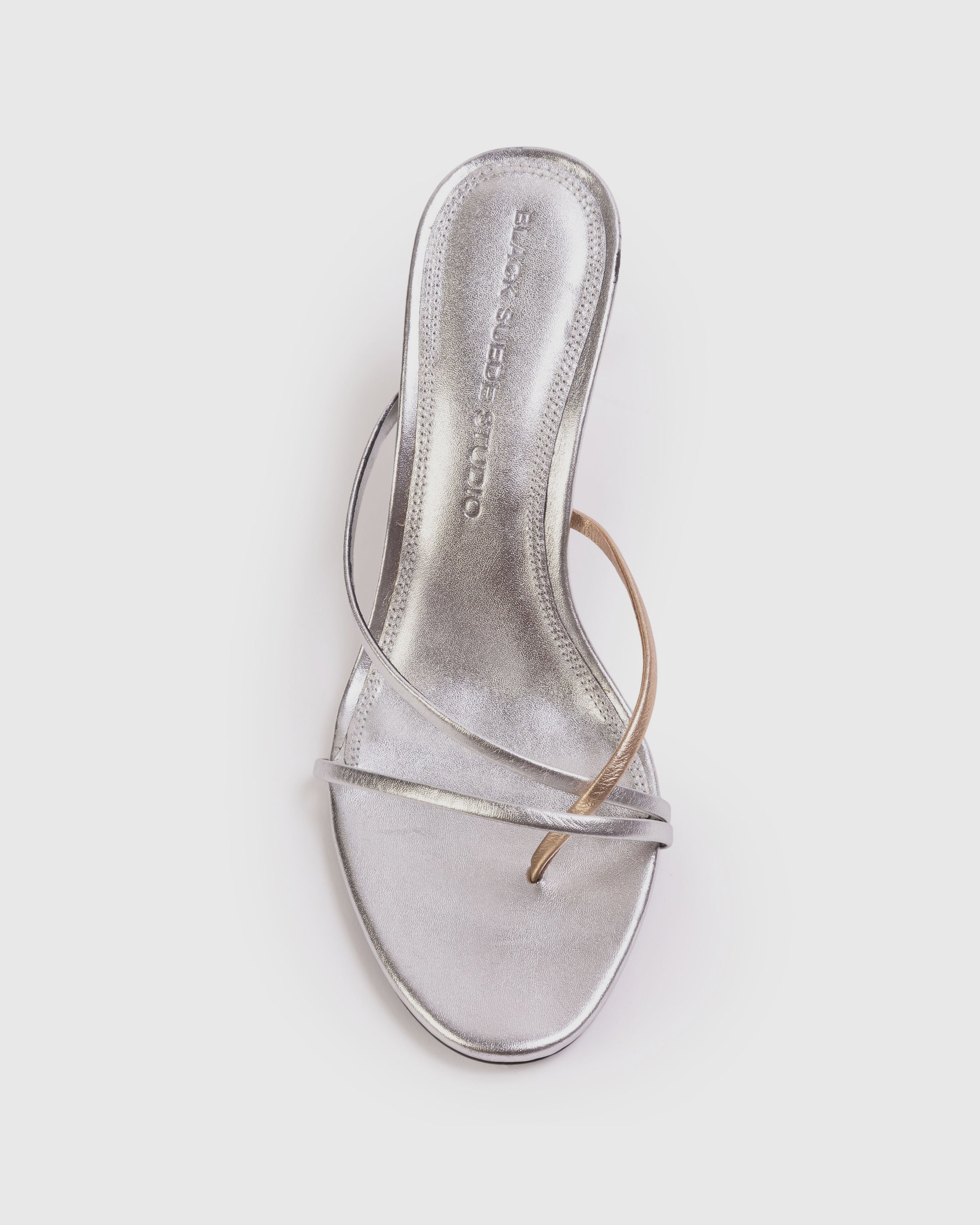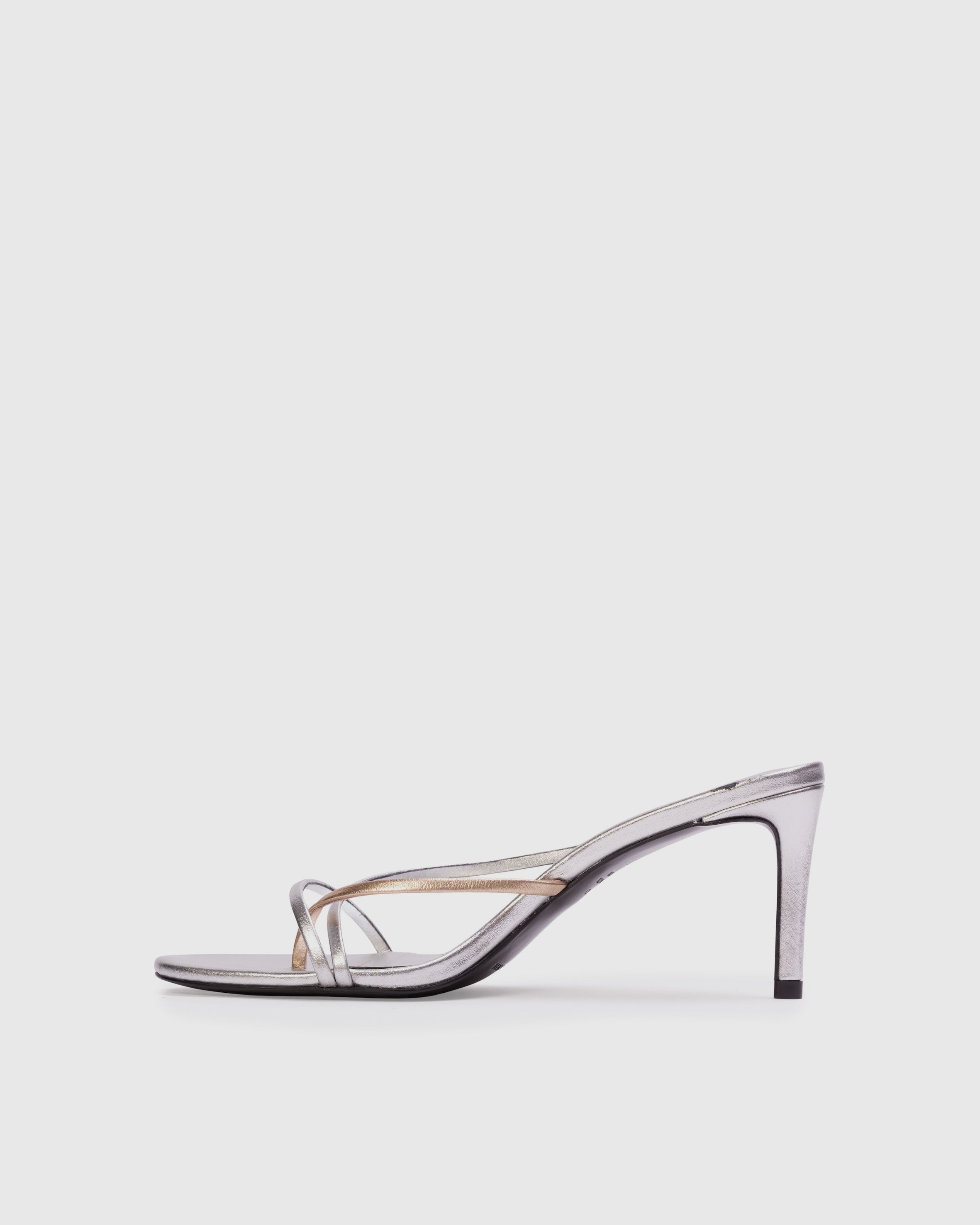 Round toe multi strap toe ring mule, set on a straight mid heel. made with smooth buffed leather.
