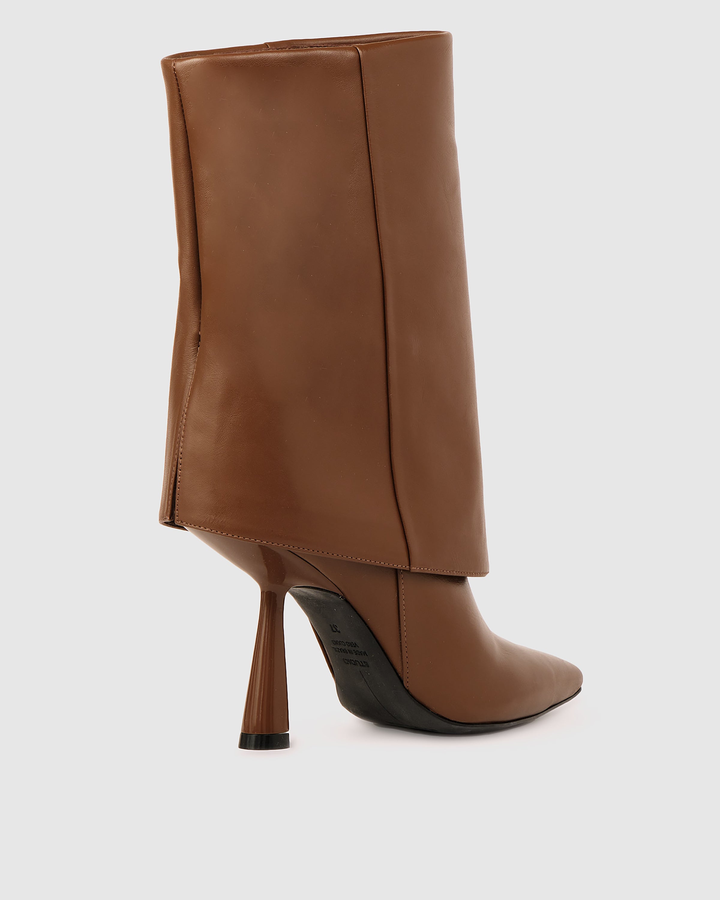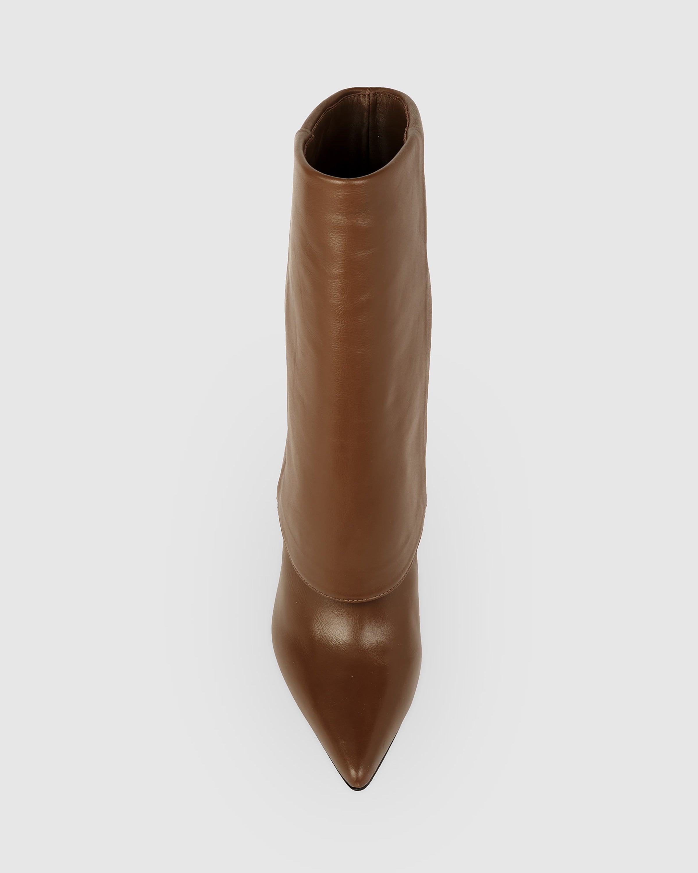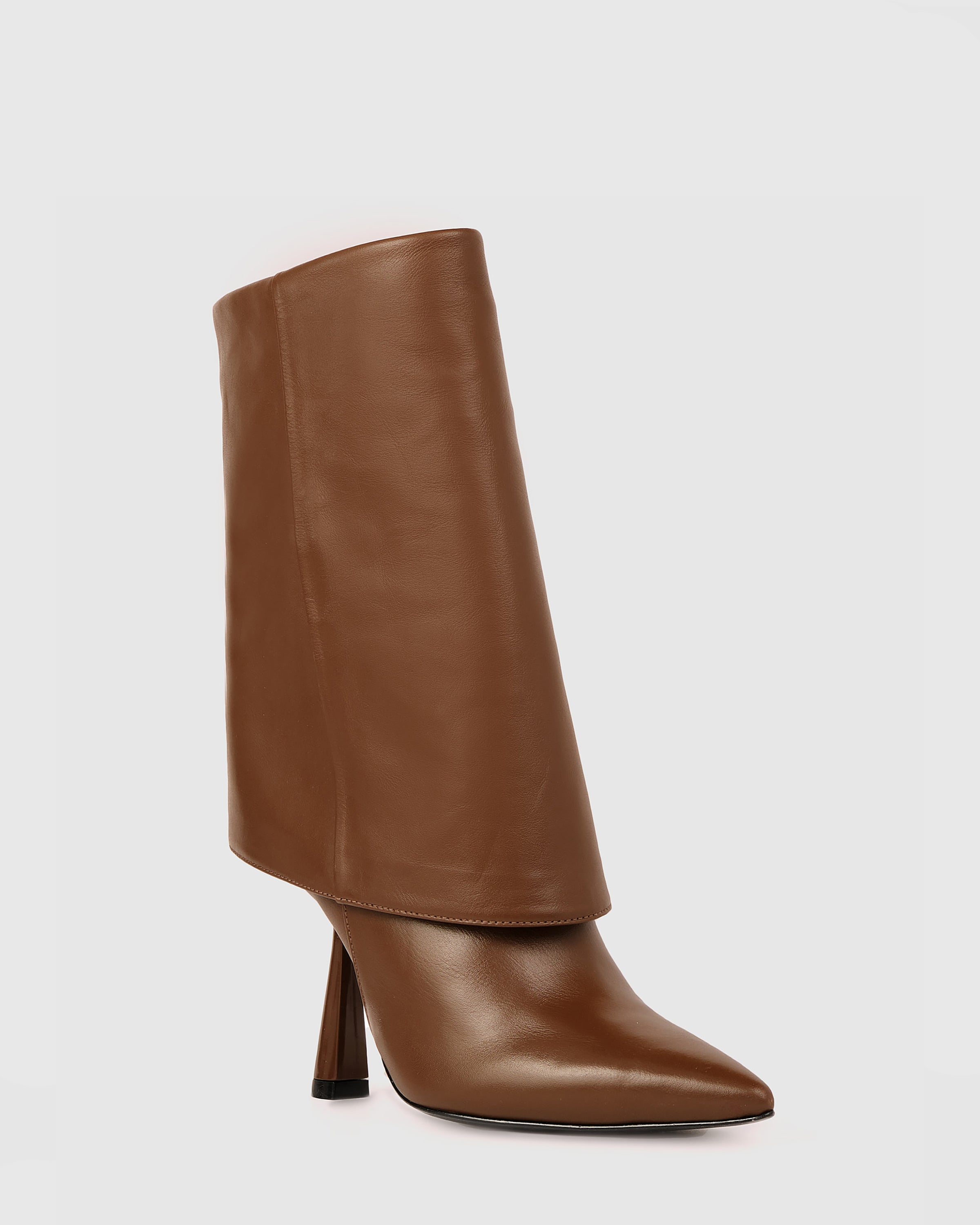 Pointy Toe Ankle Boot with Structural Heel and Roll Over Shaft