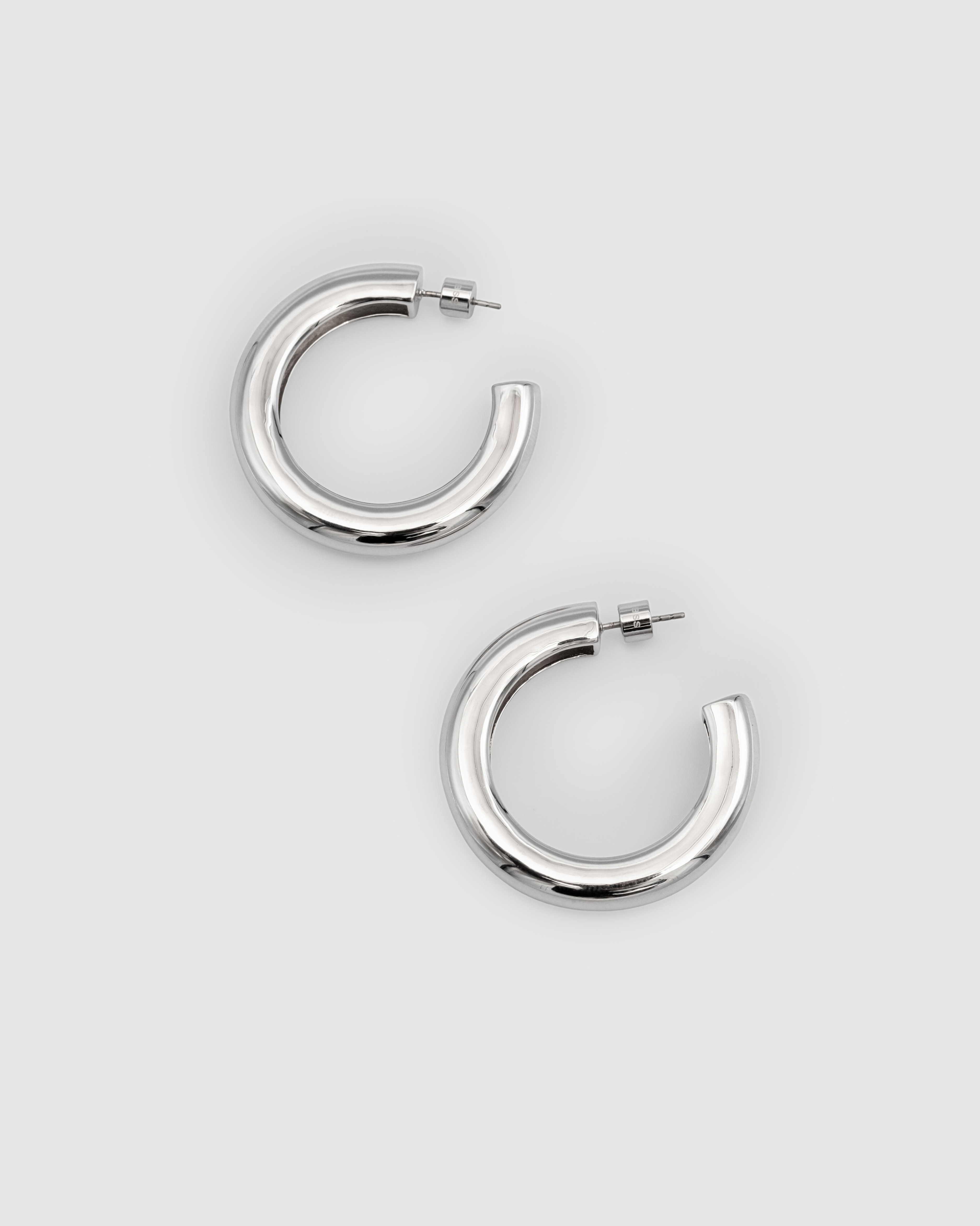 Classic hoop pair of earrings crafted with rhodium plated brass. They are lightweight for an all day wearability.