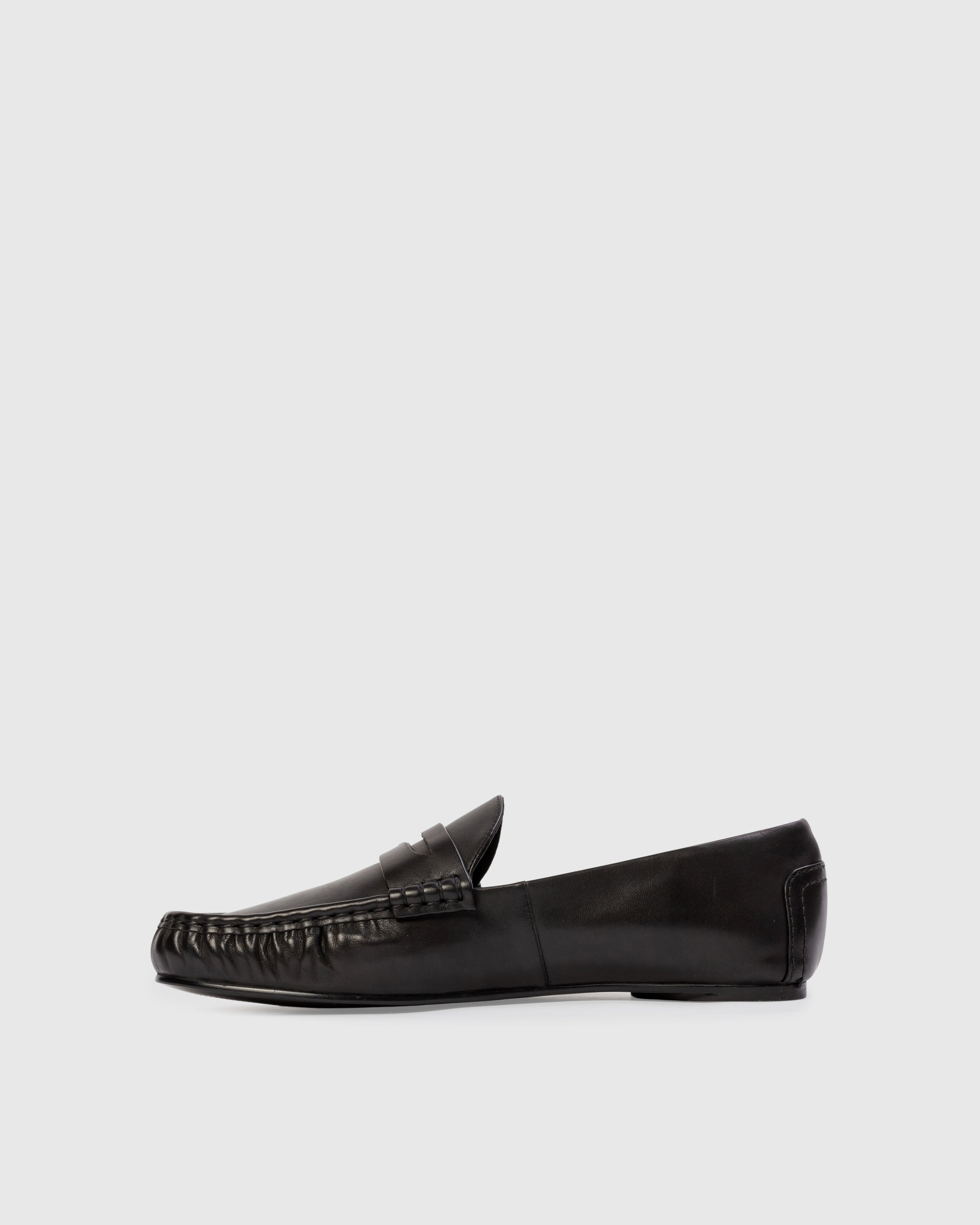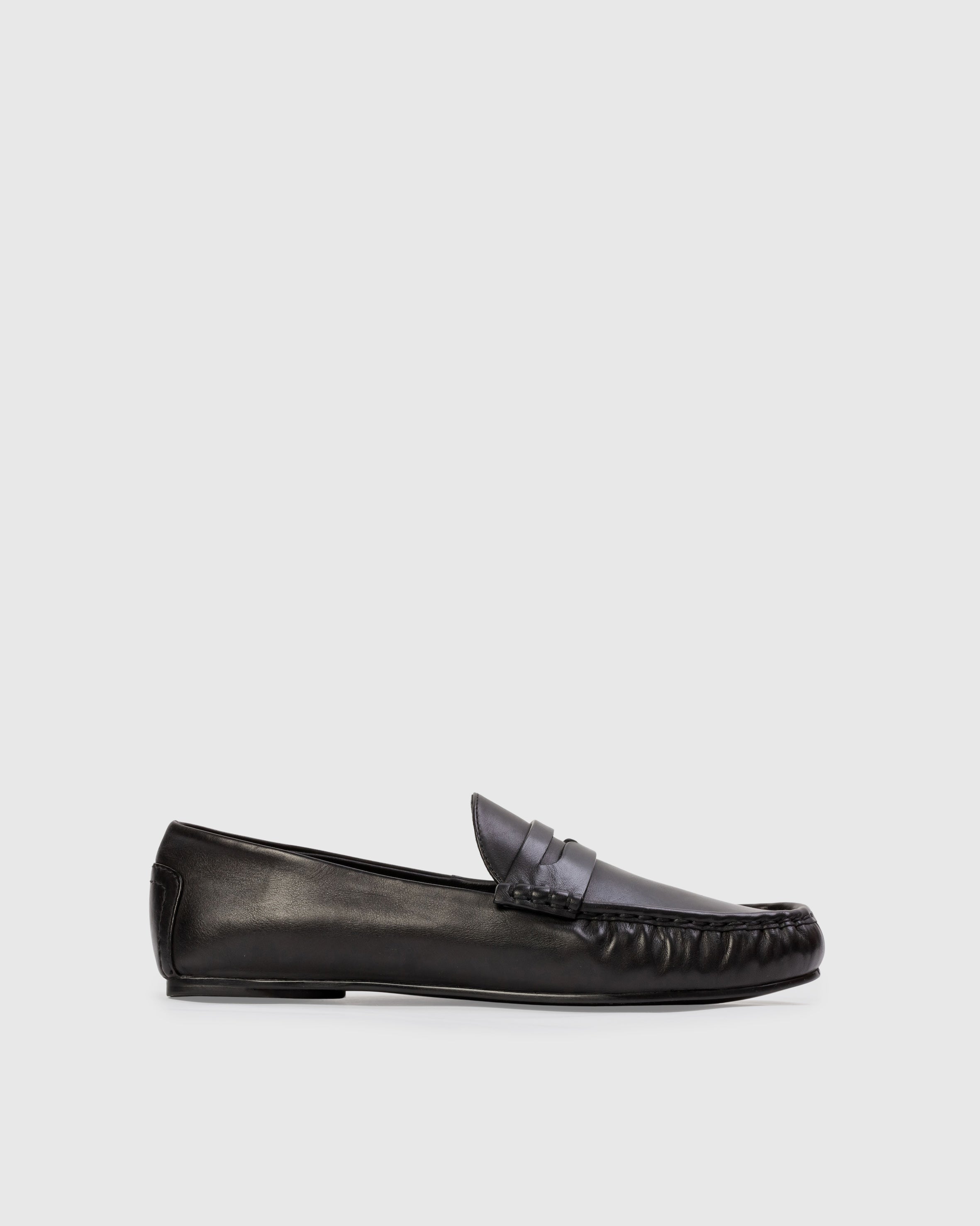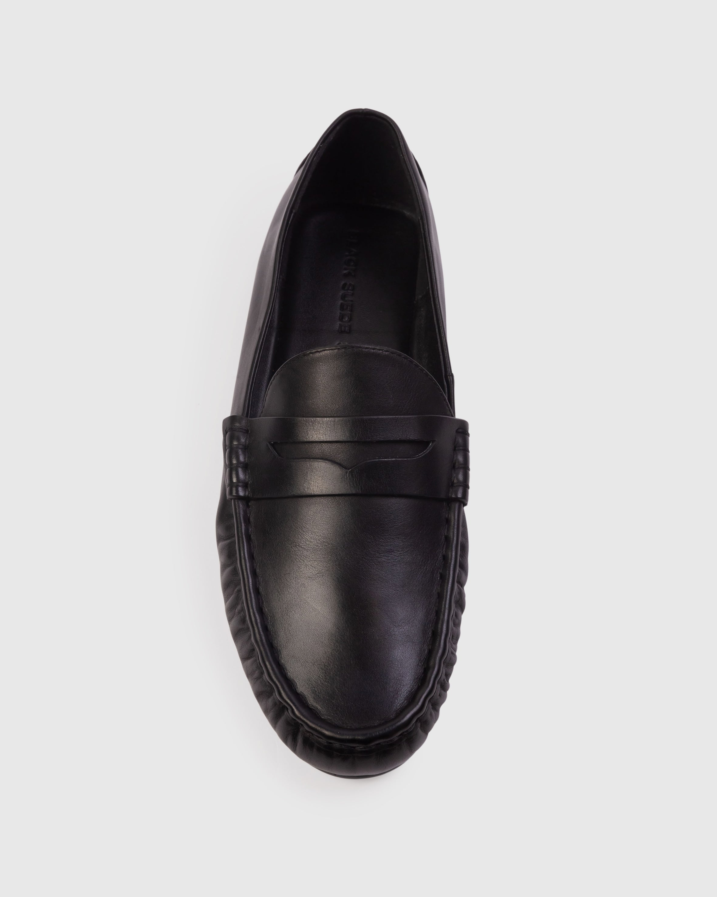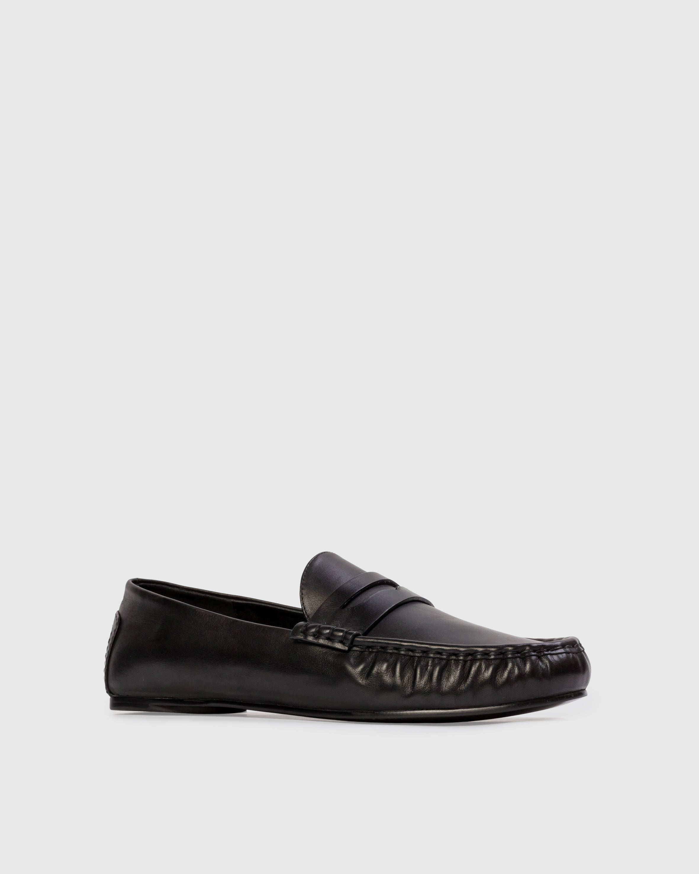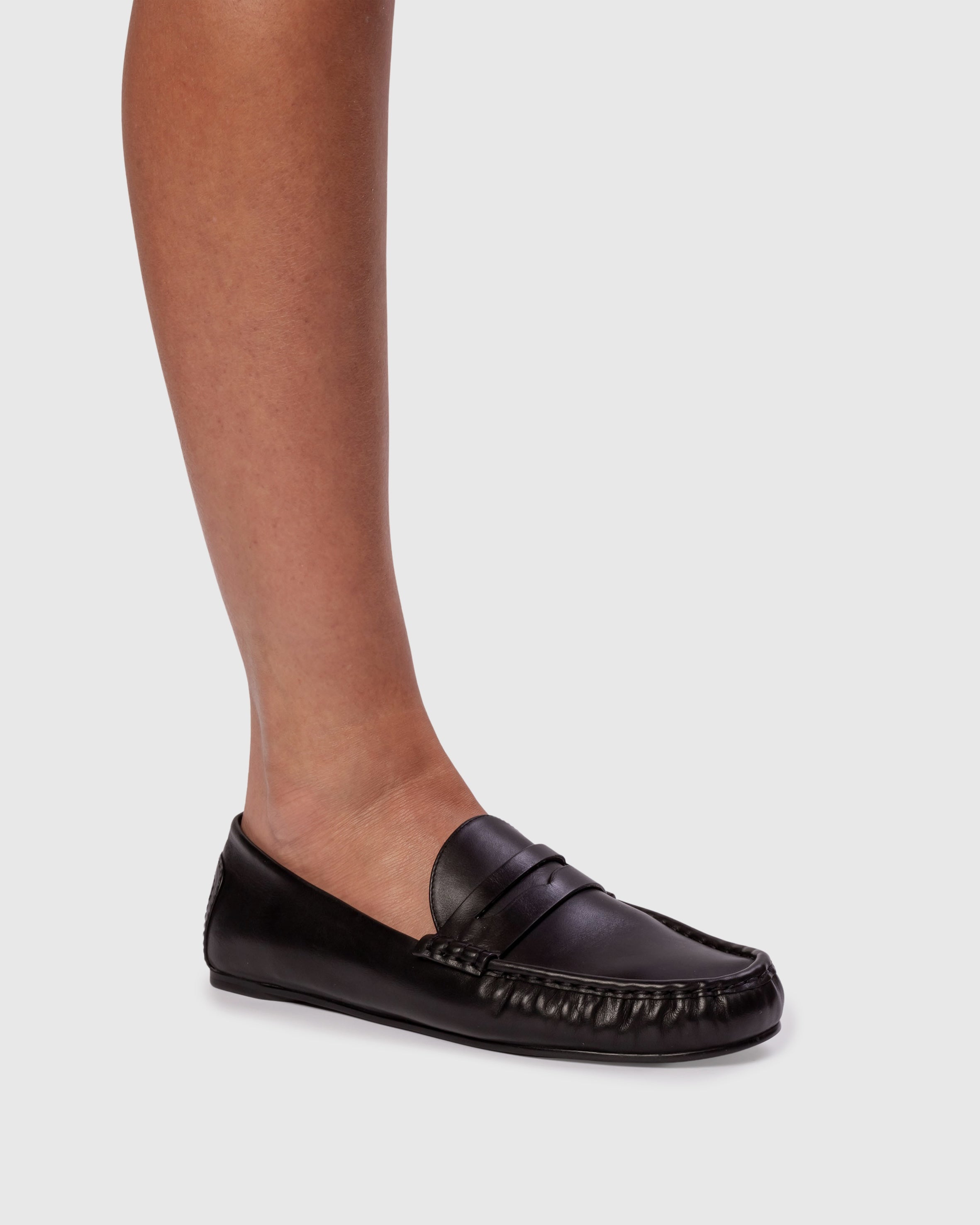 Round toe moccasin loafer with rushed backing. Made with smooth buffed leather.