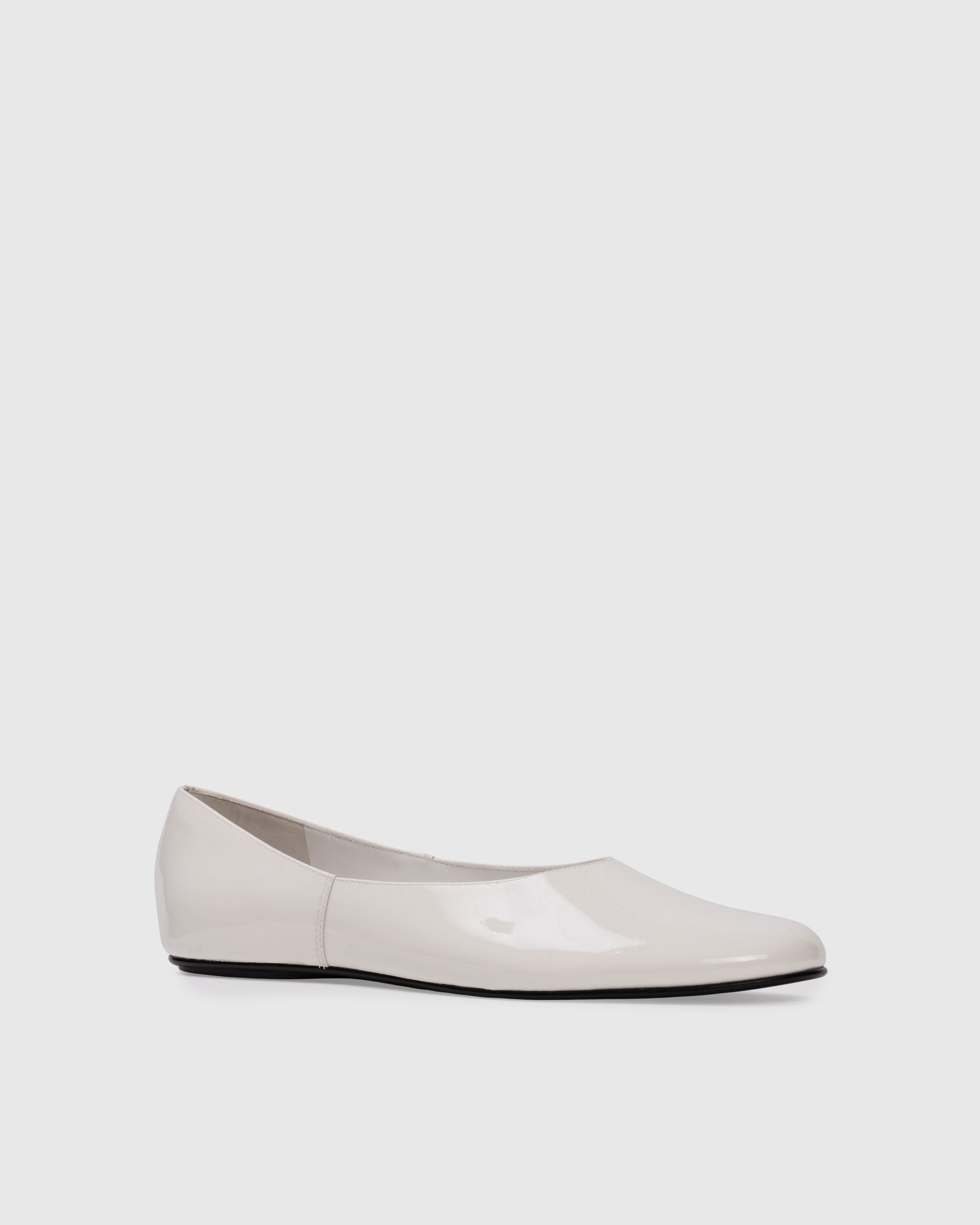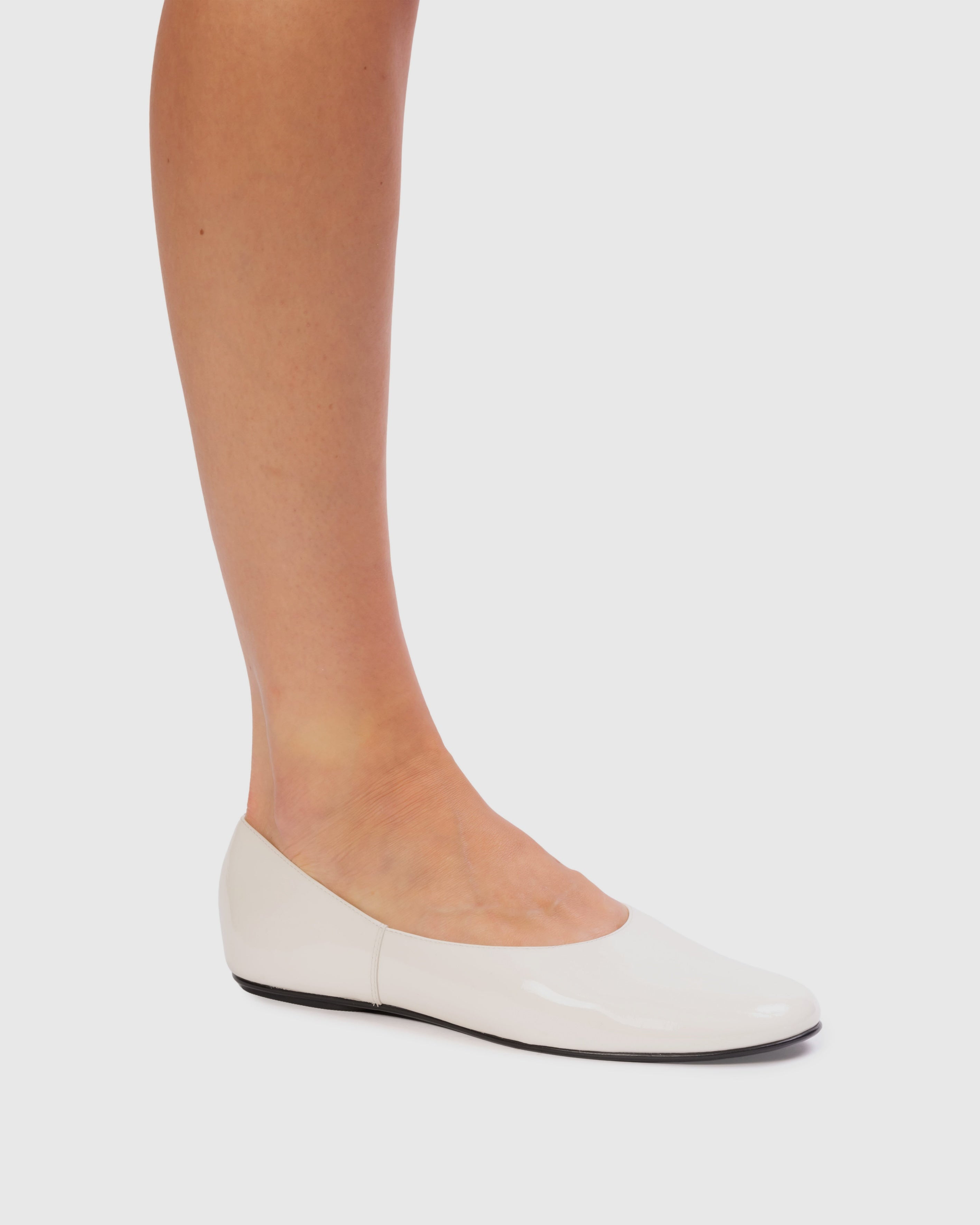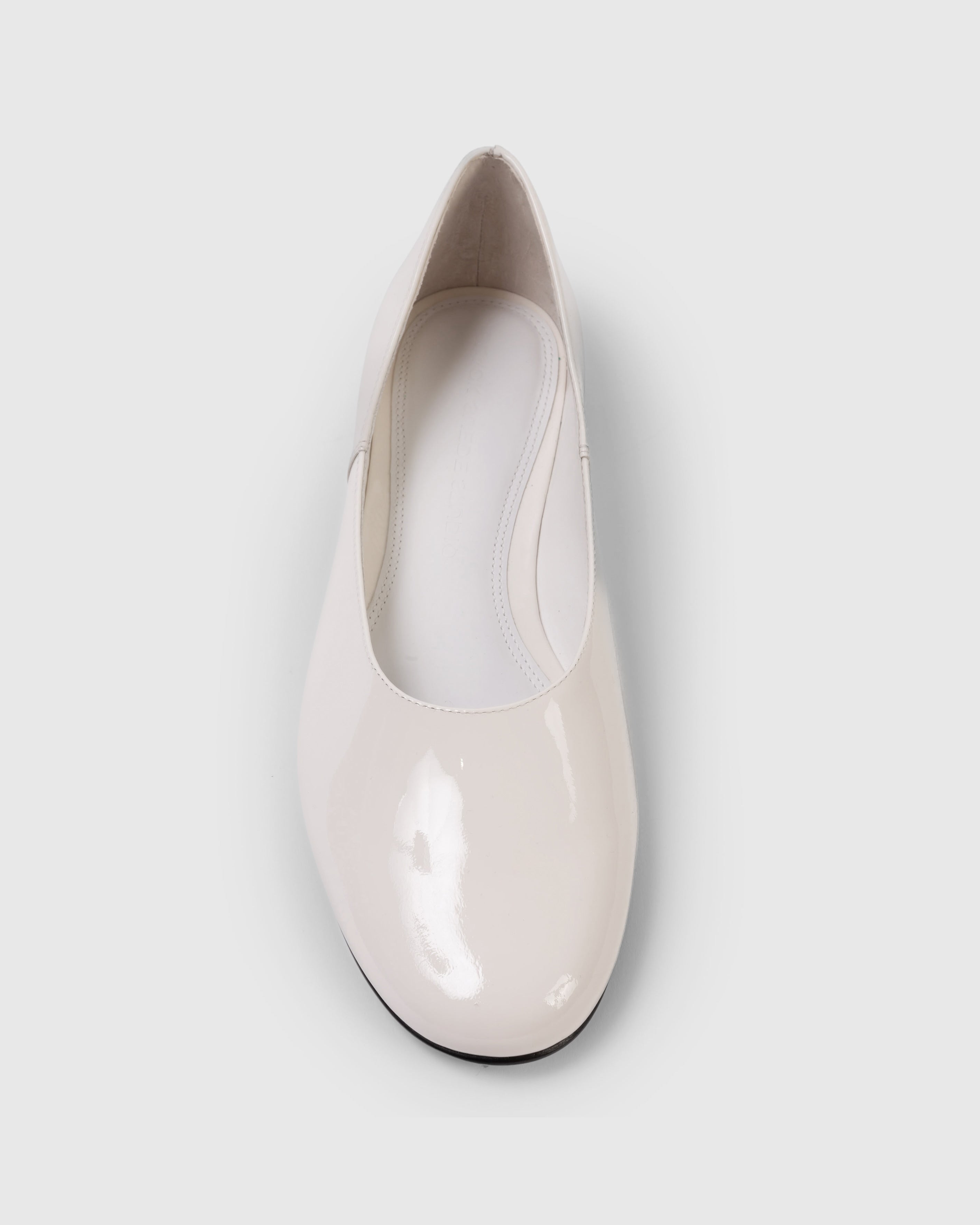 Round-toe tailored ballerina, set on a leather sole. Made with smooth patent leather.