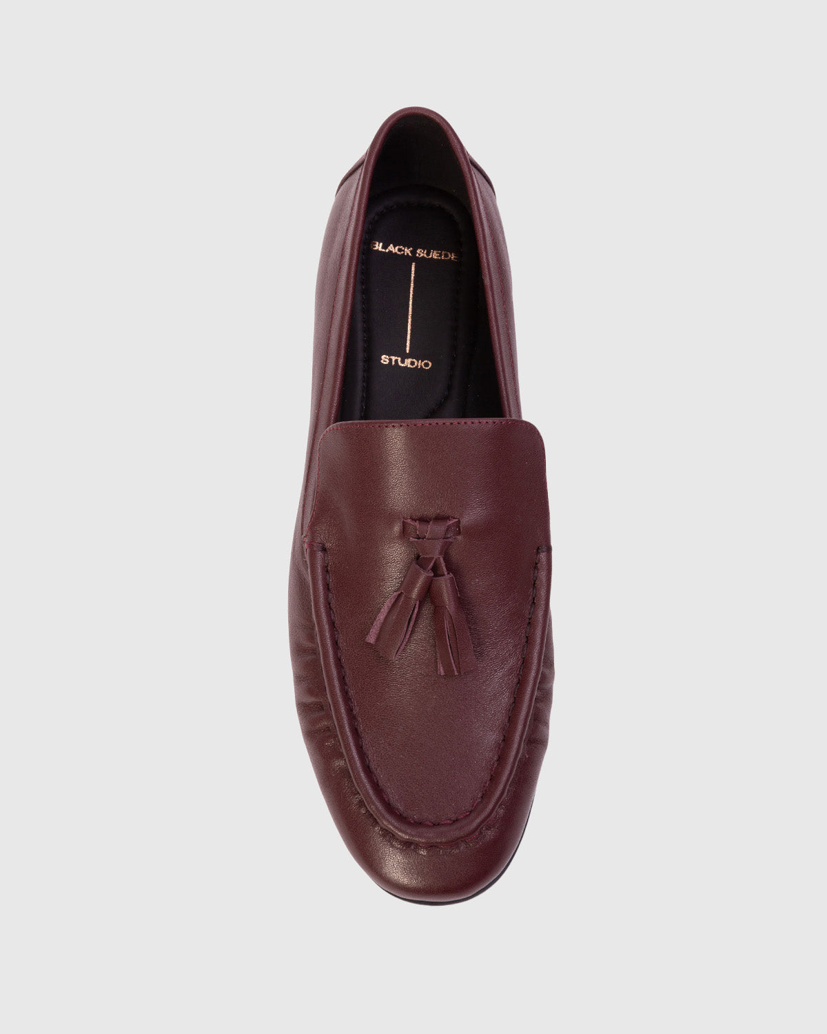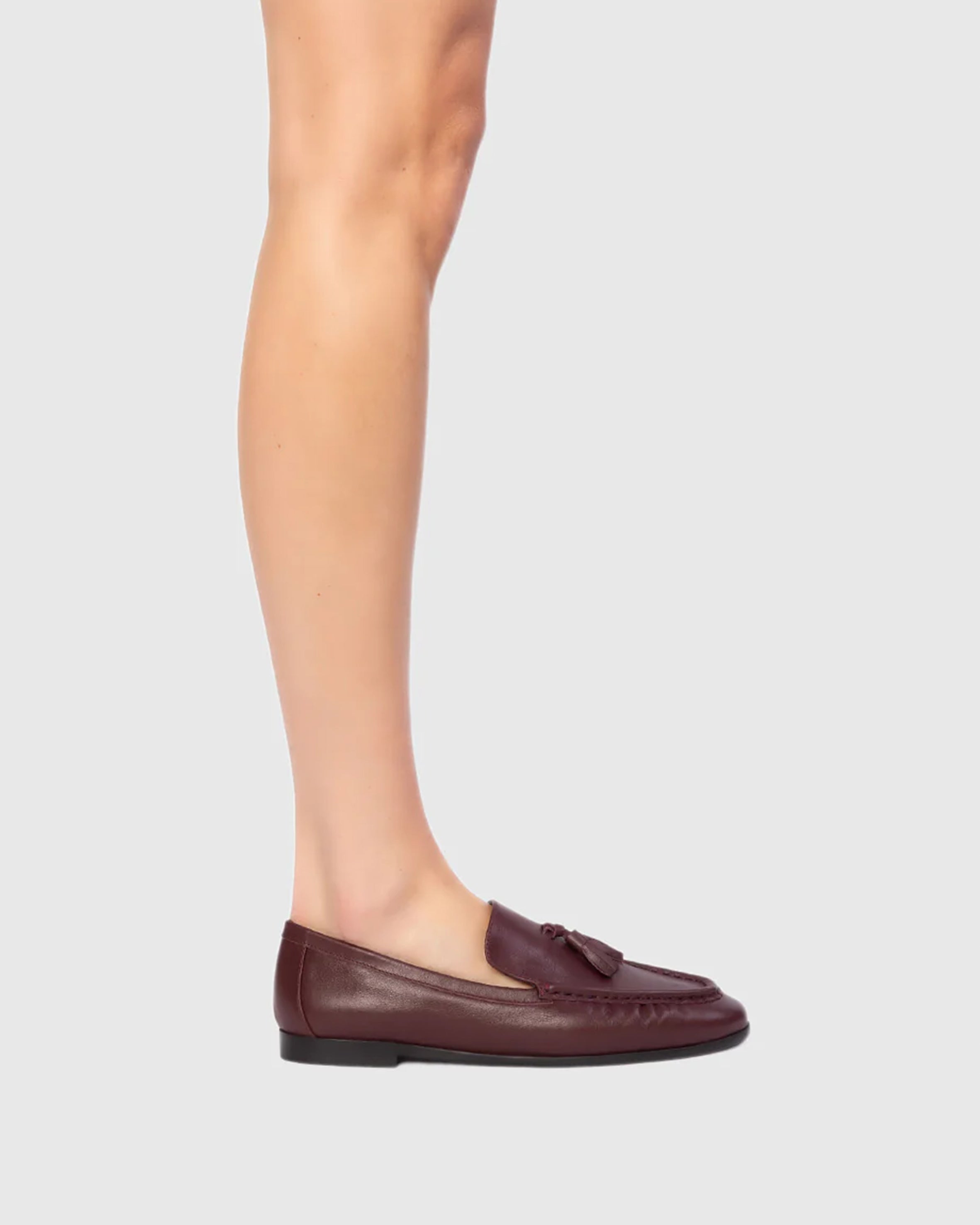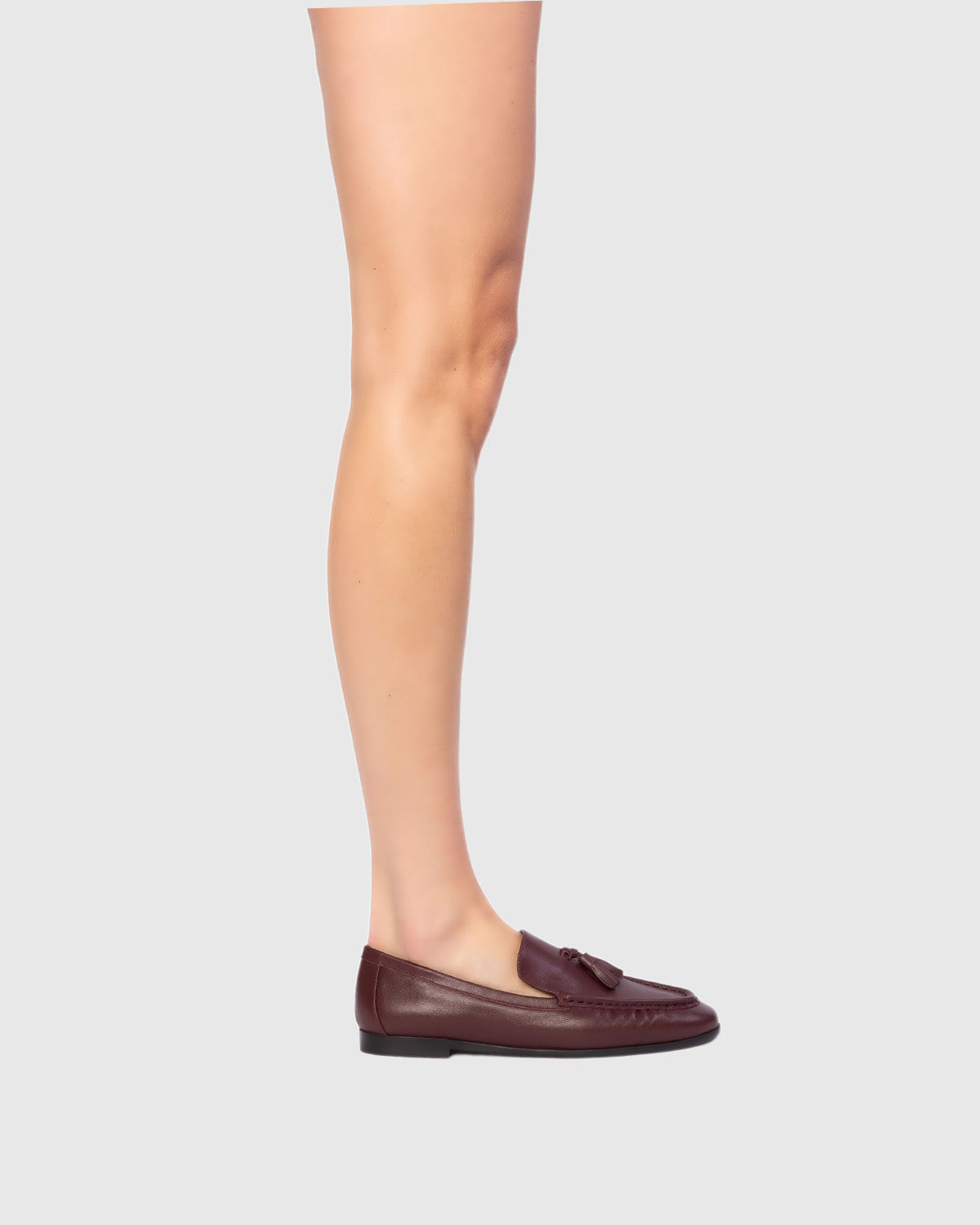 Classic loafer with fringe tassel, made with smooth brushed leather.
