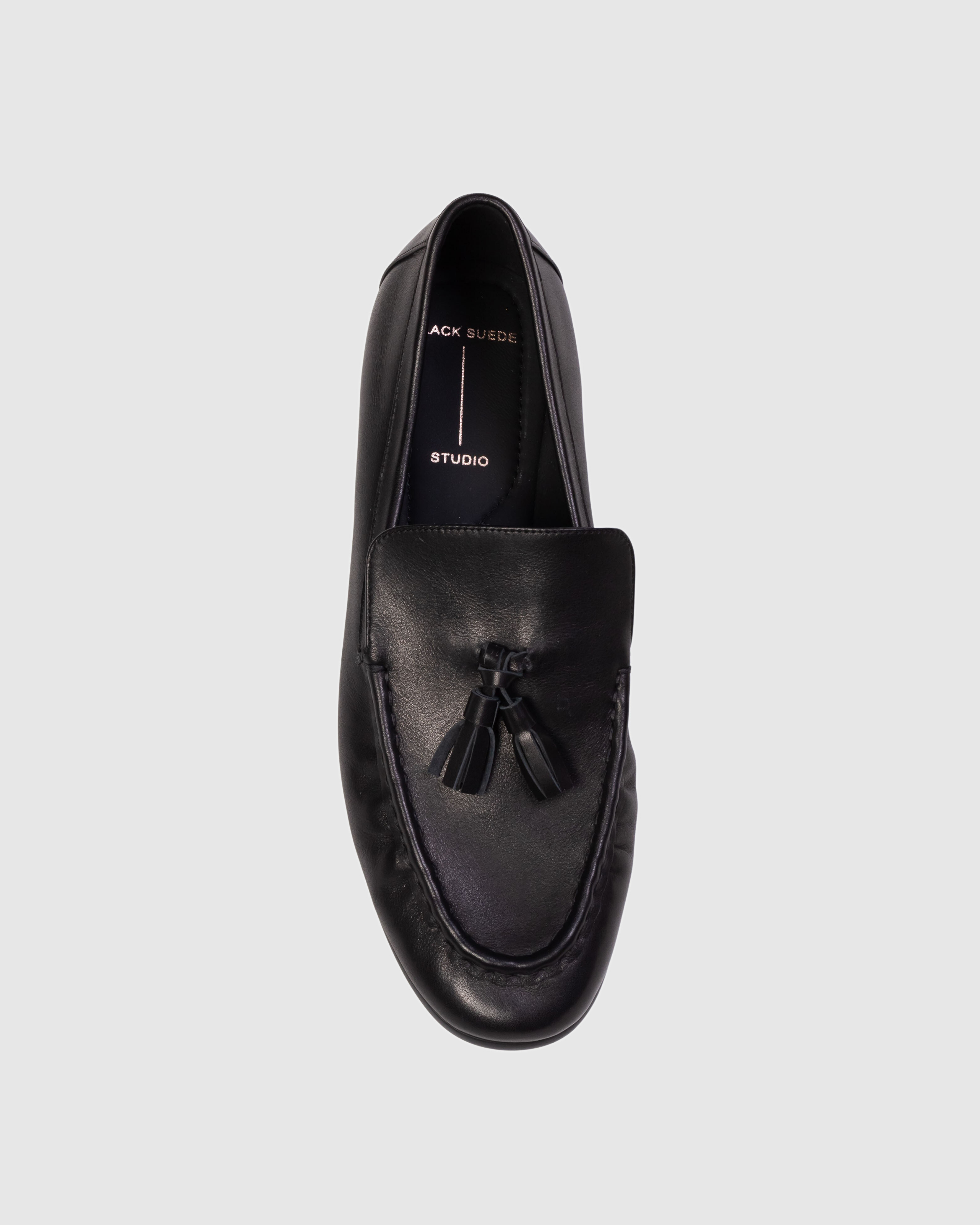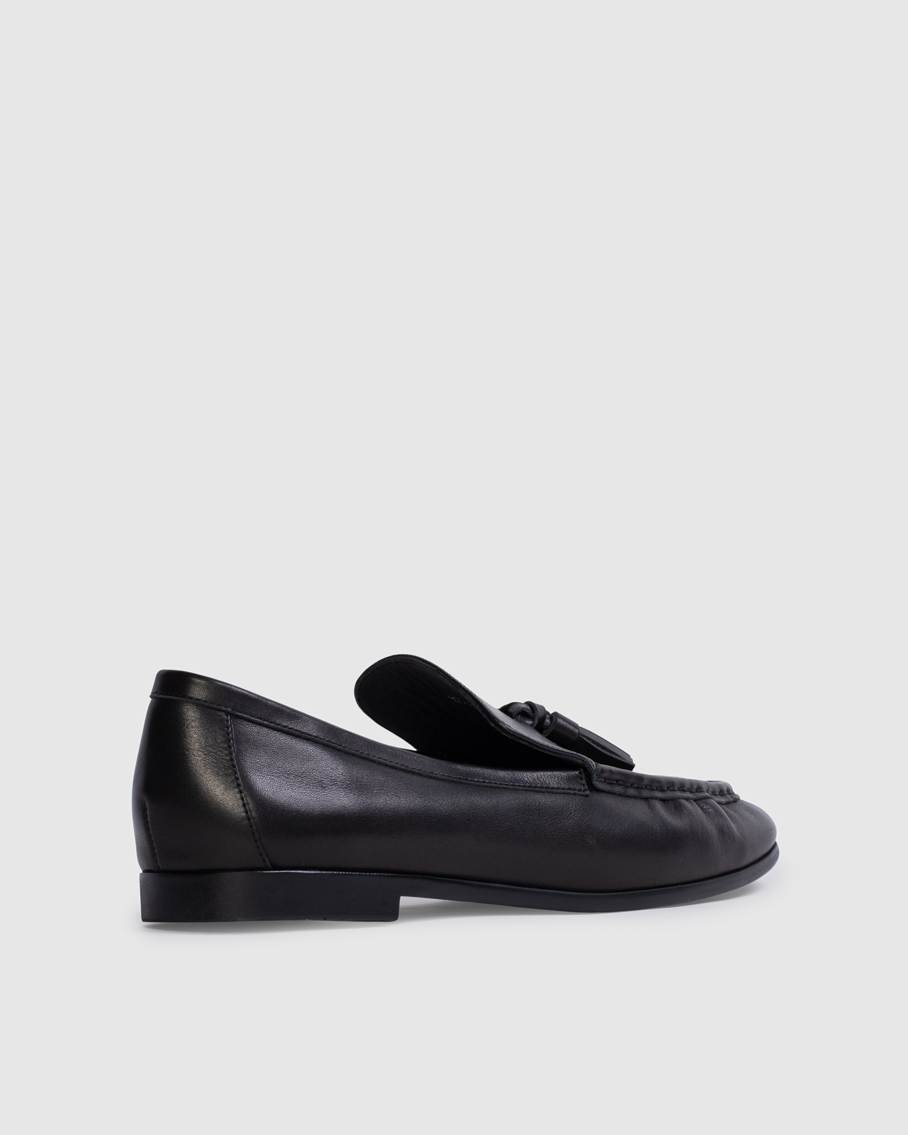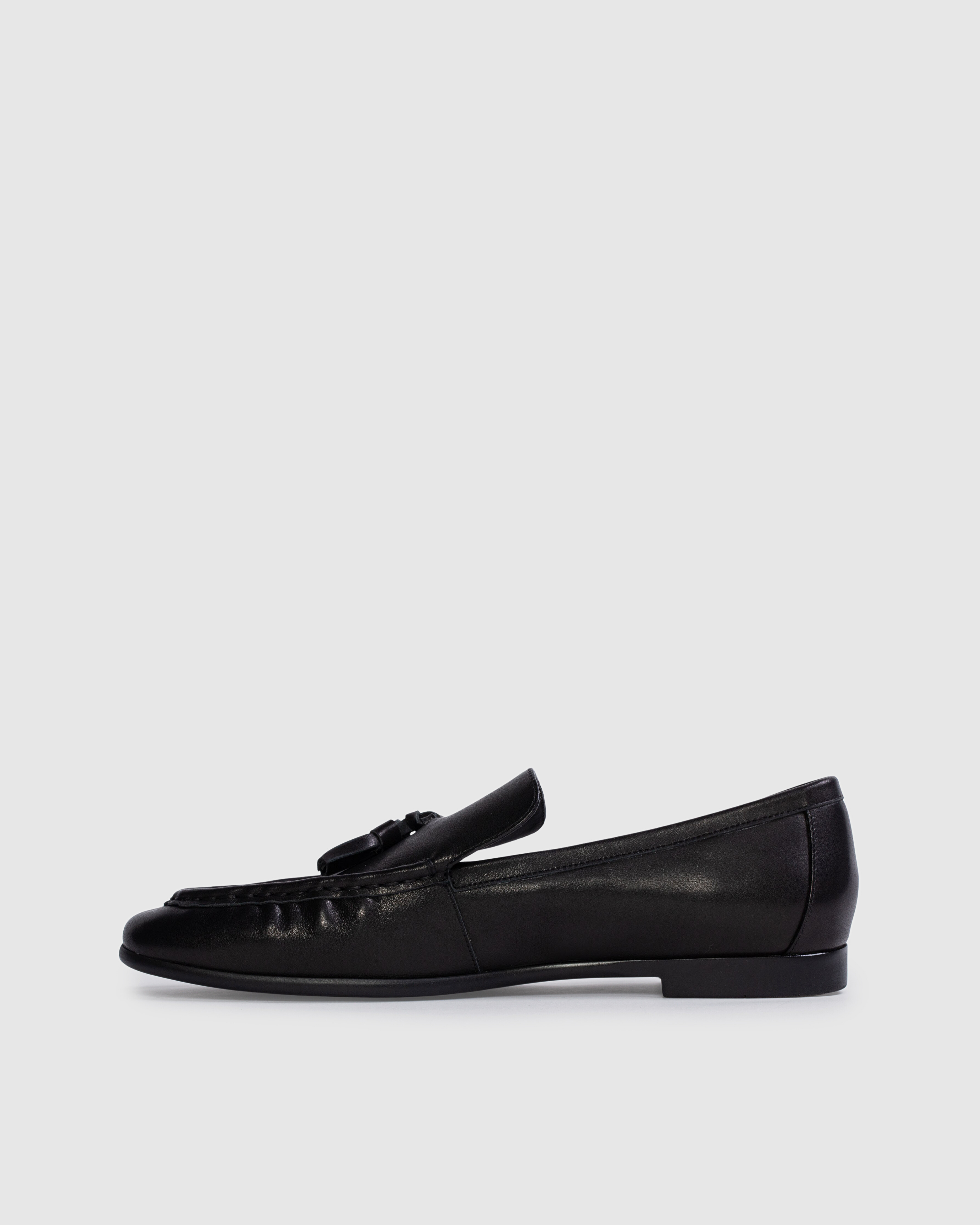 Classic loafer with fringe tassel, made with smooth brushed leather.