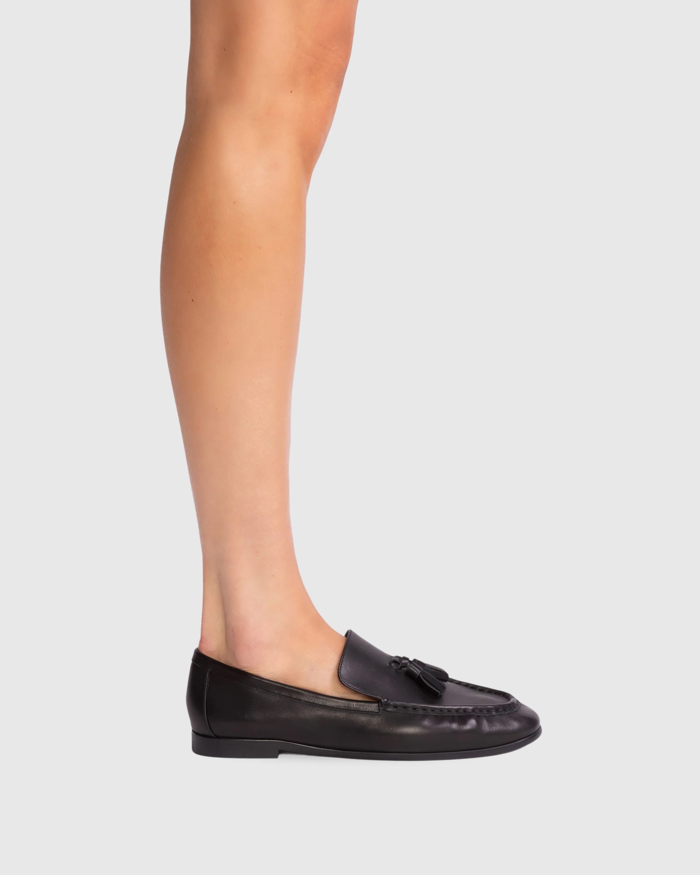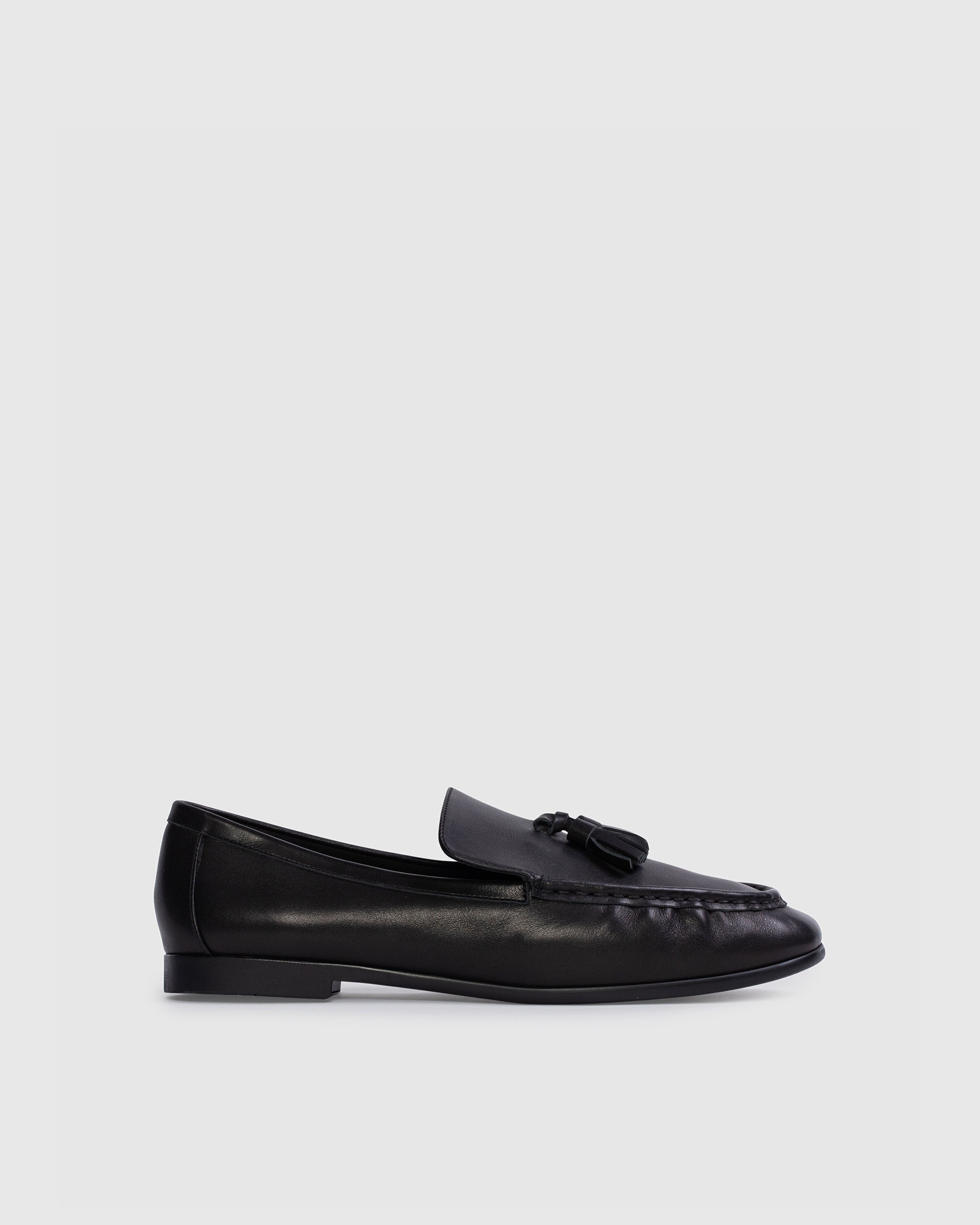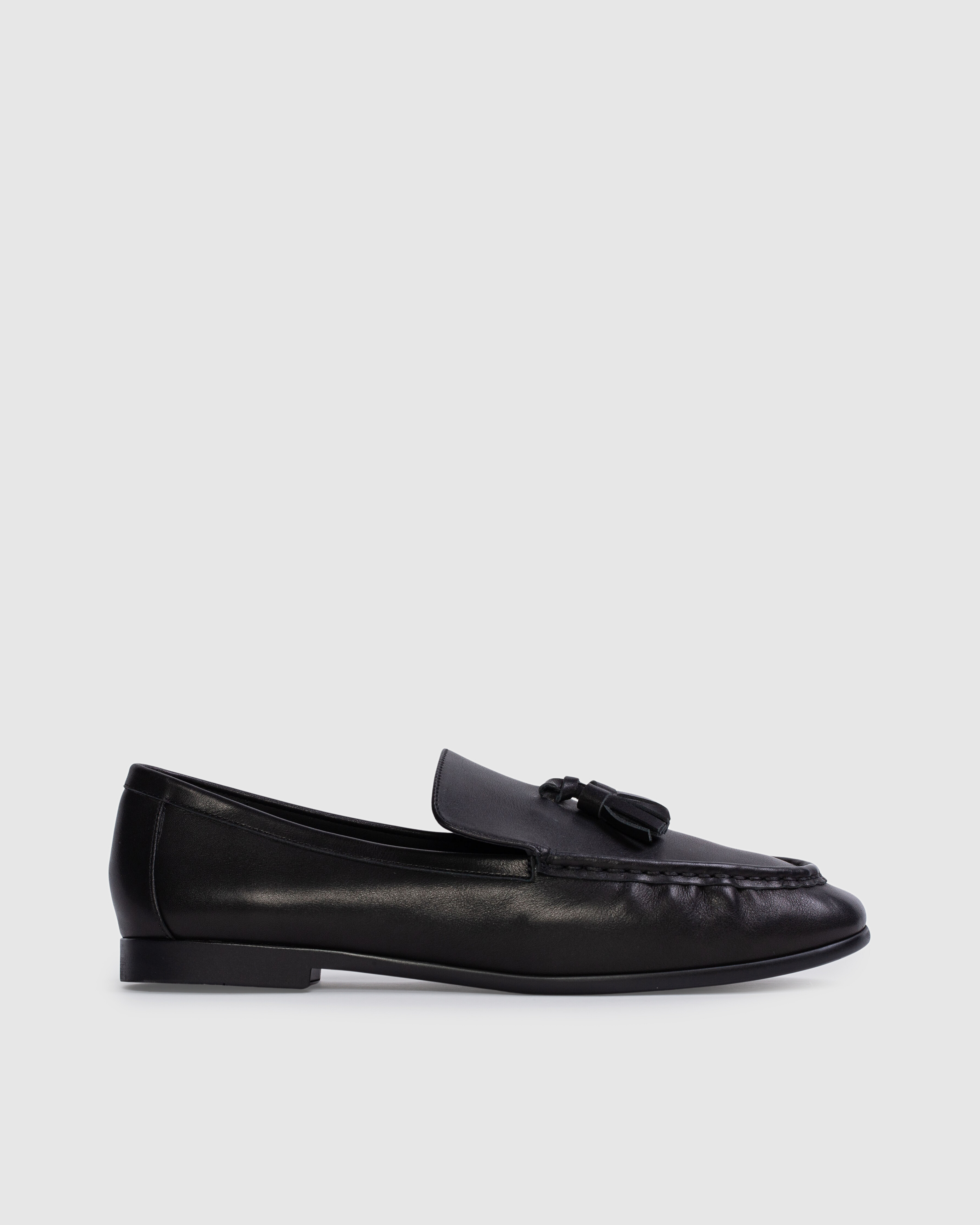 Classic loafer with fringe tassel, made with smooth brushed leather.