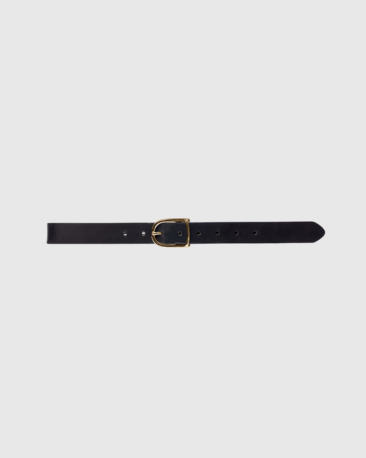 18k gold plated brass D-shaped buckle. Secured on a smooth buffed leather strap.