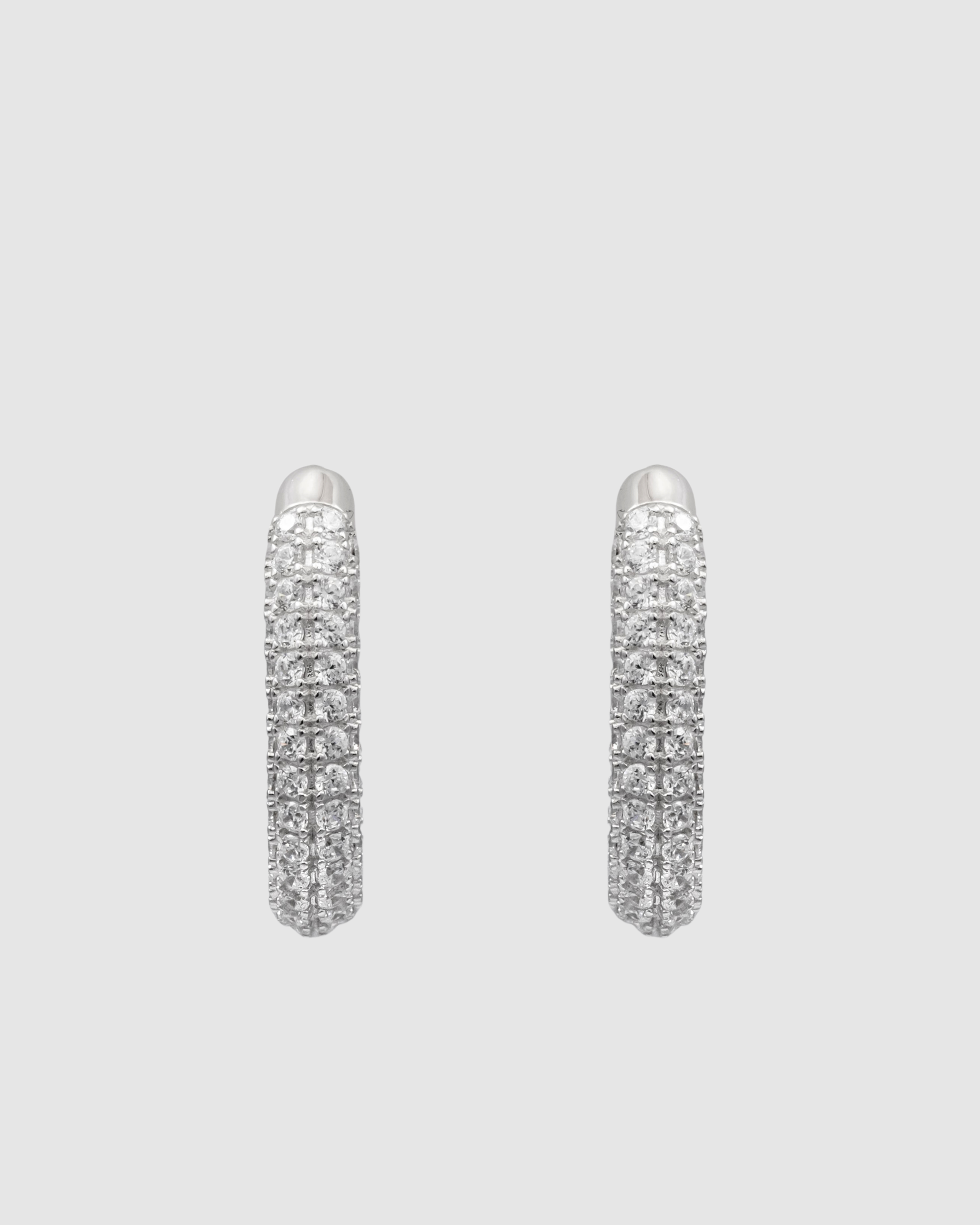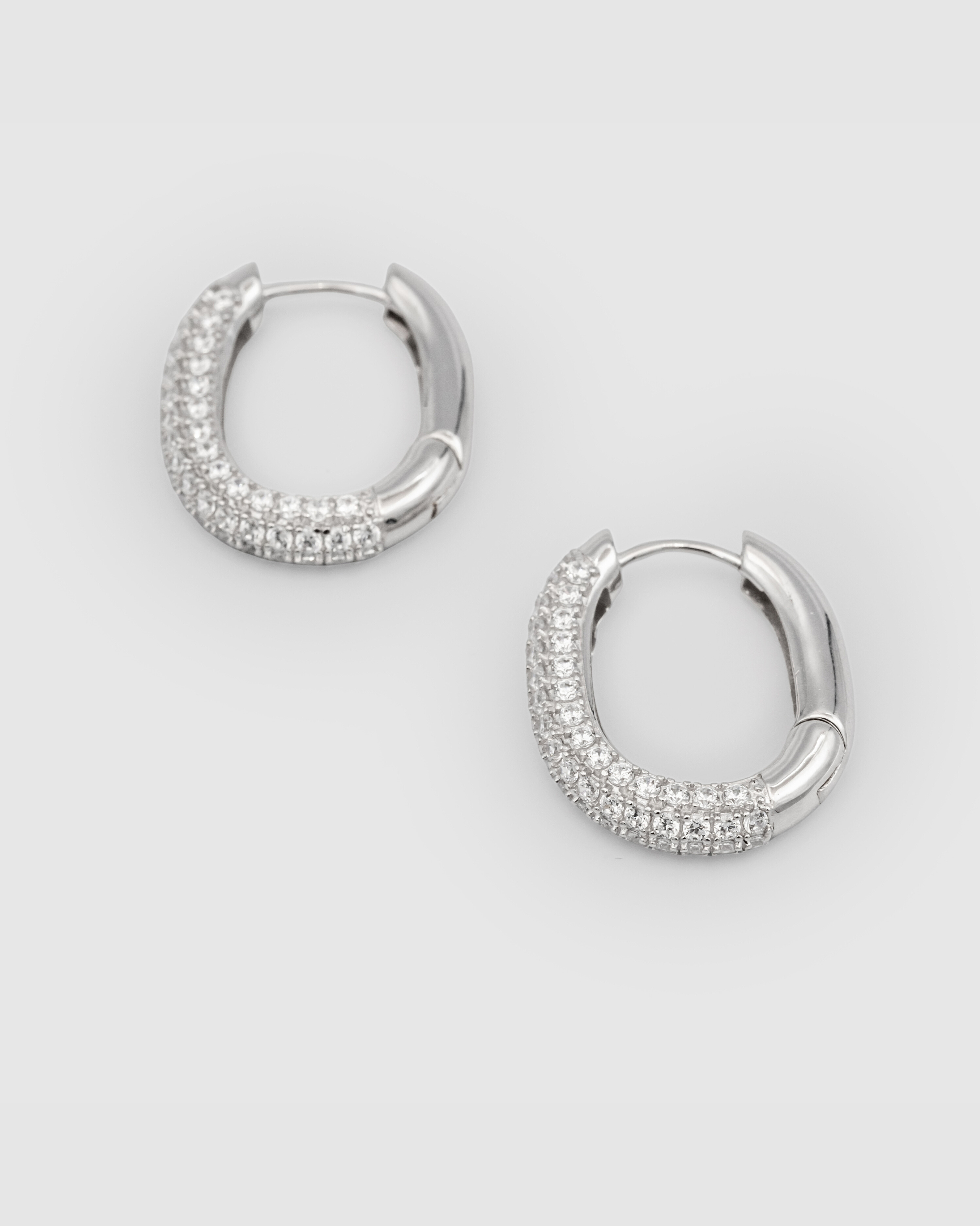 Clicker style hoop pair of earrings crafted from rhodium plated brass and white CZ stones. They are lightweight for an all day wearability.