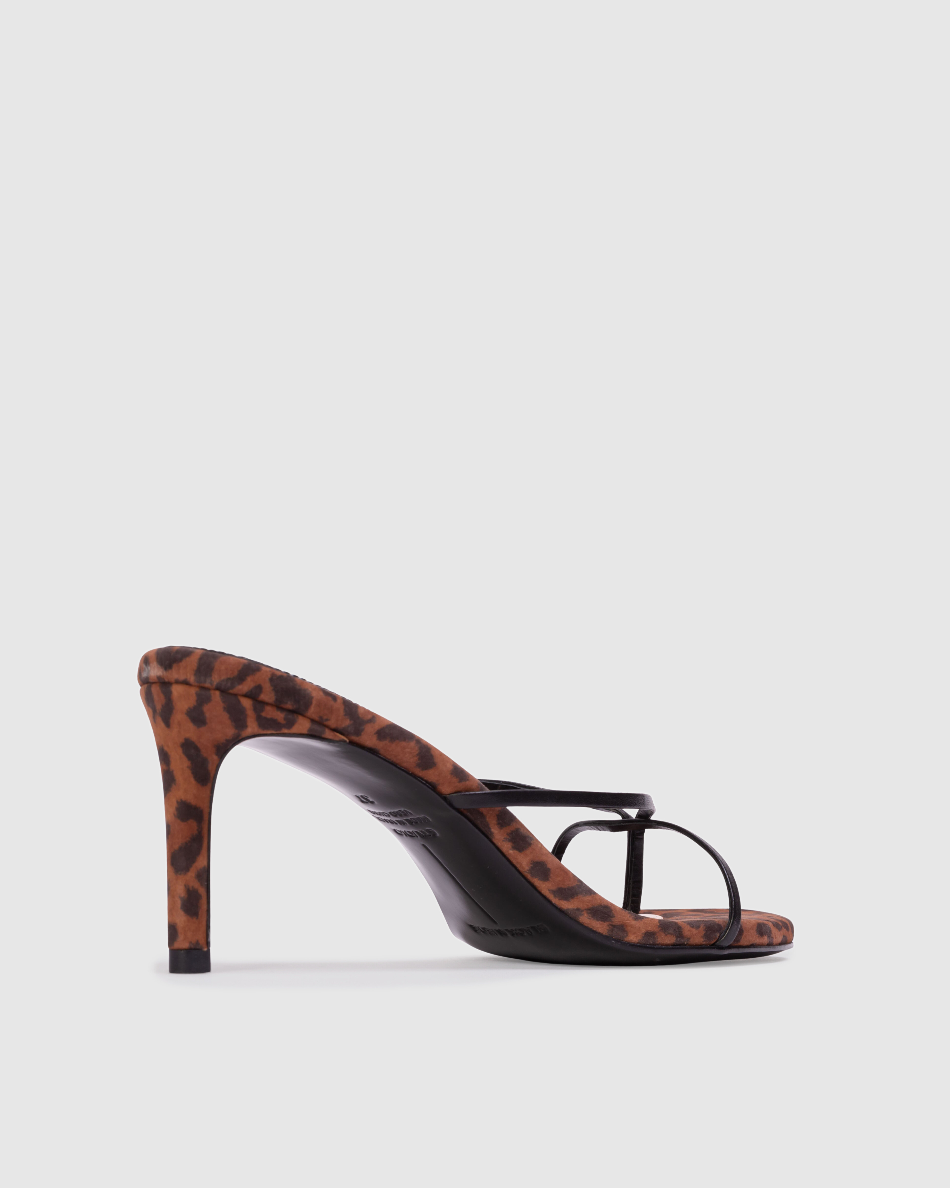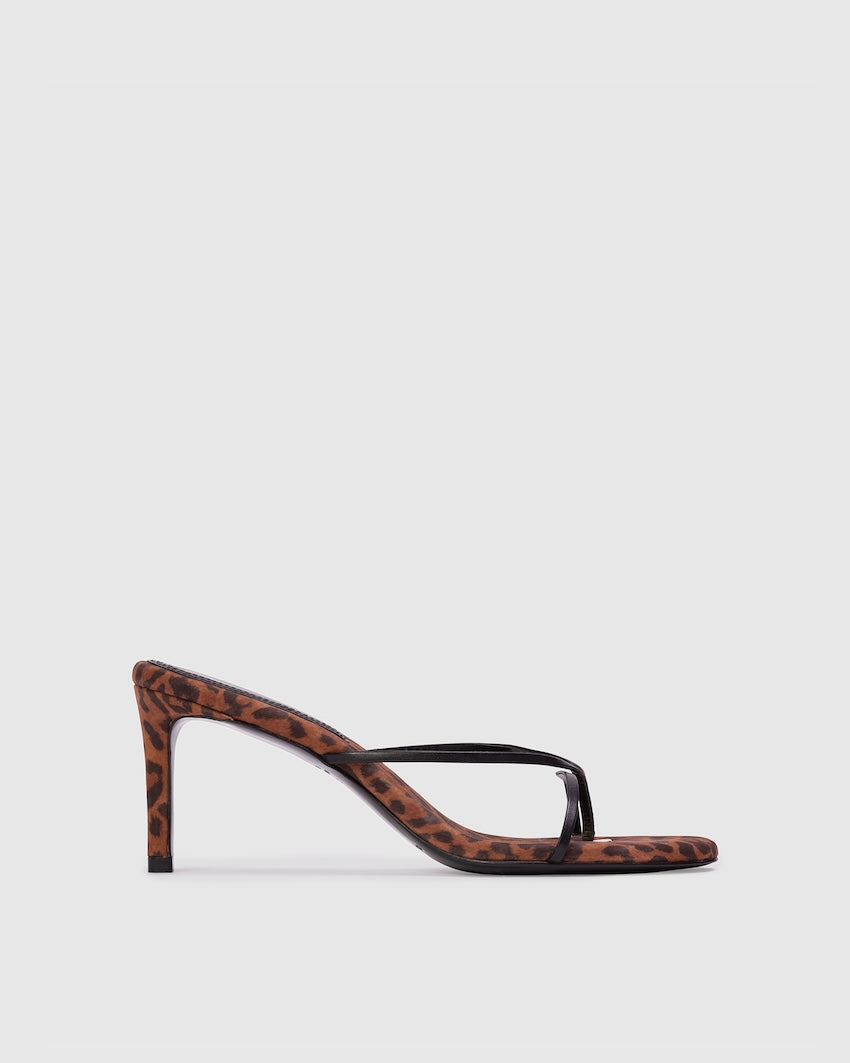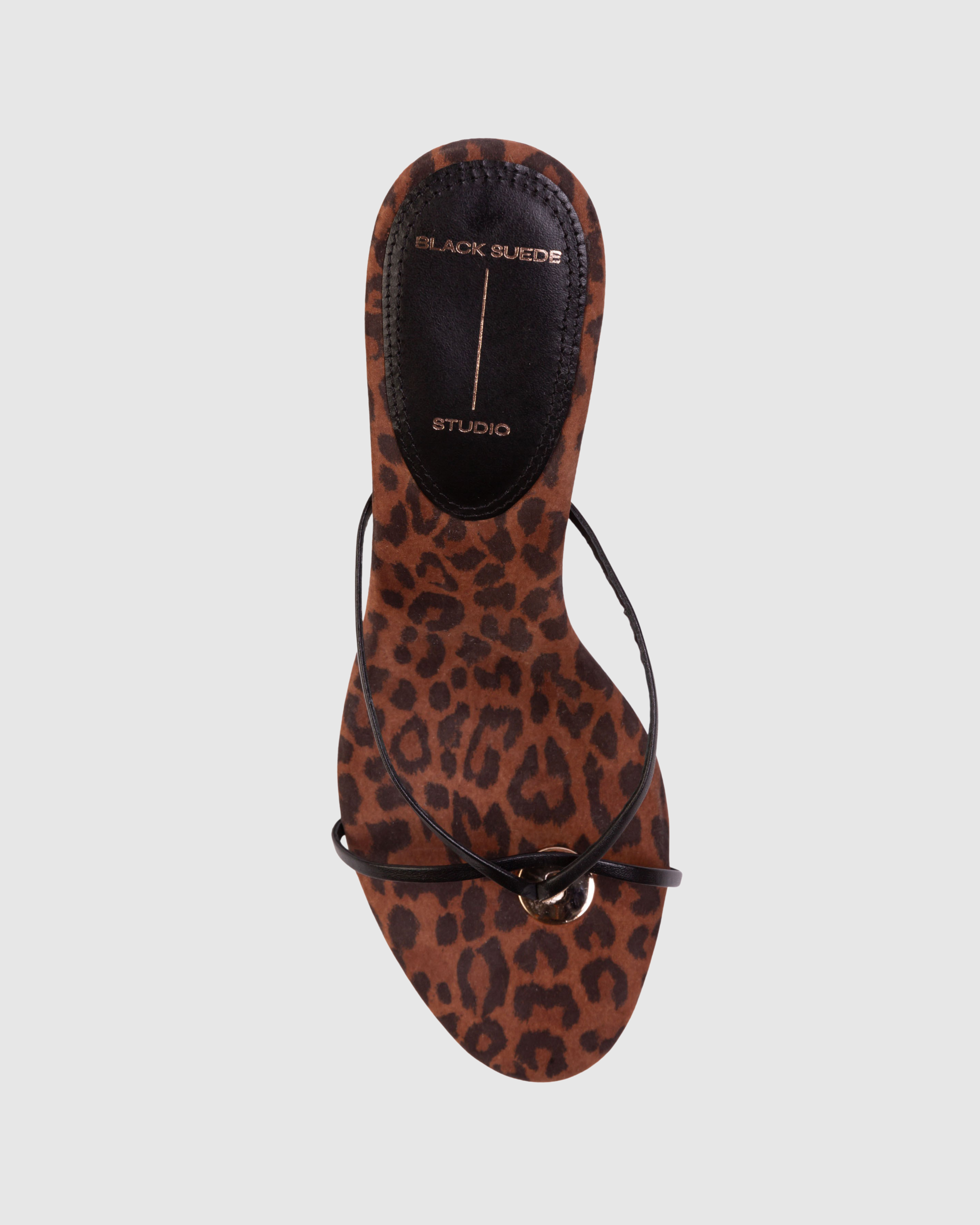 round toe thong slipper mule with a gold medallion around the toe post, set on a straight mid heel. made with nubuck and smooth buffed leather.
