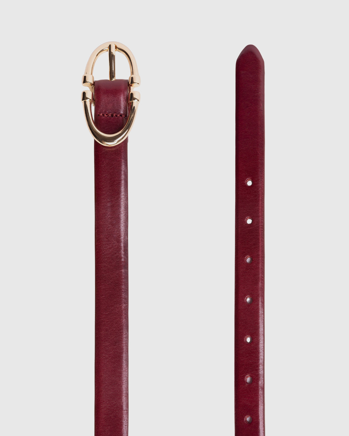Color + Material: Bordeaux leather with 18k gold plated brass hardware.