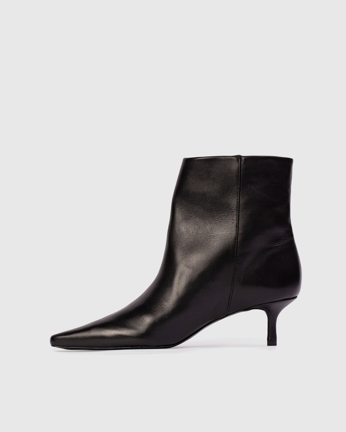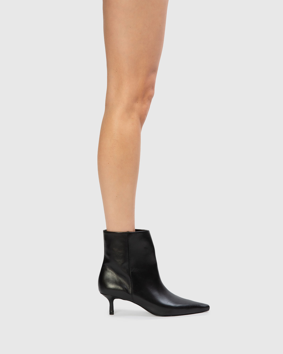 Snipped toe leather ankle boots, set on an curved kitten heel. Made with smooth buffed leather.