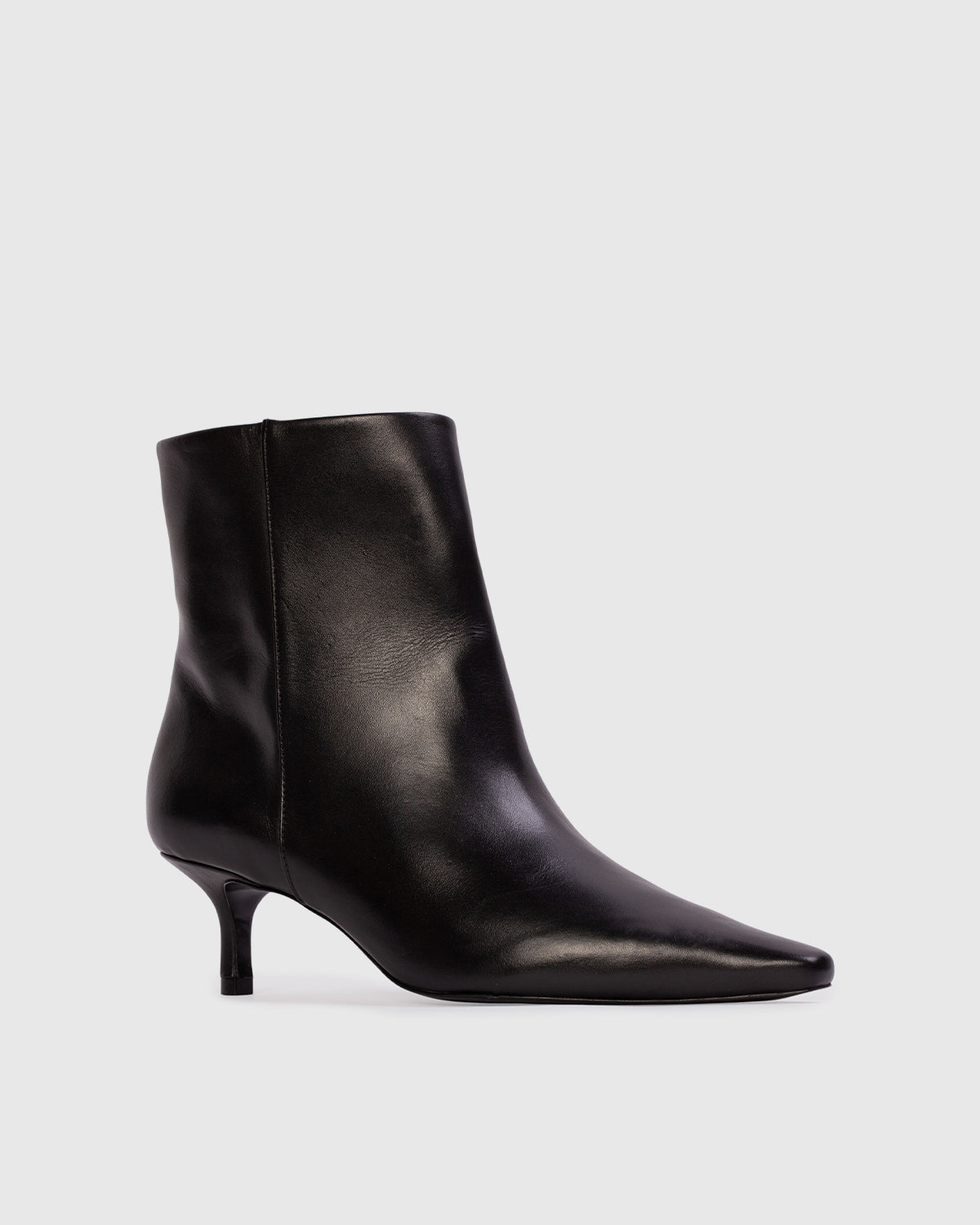 Snipped toe ankle boot, set on an curved kitten heel./p>