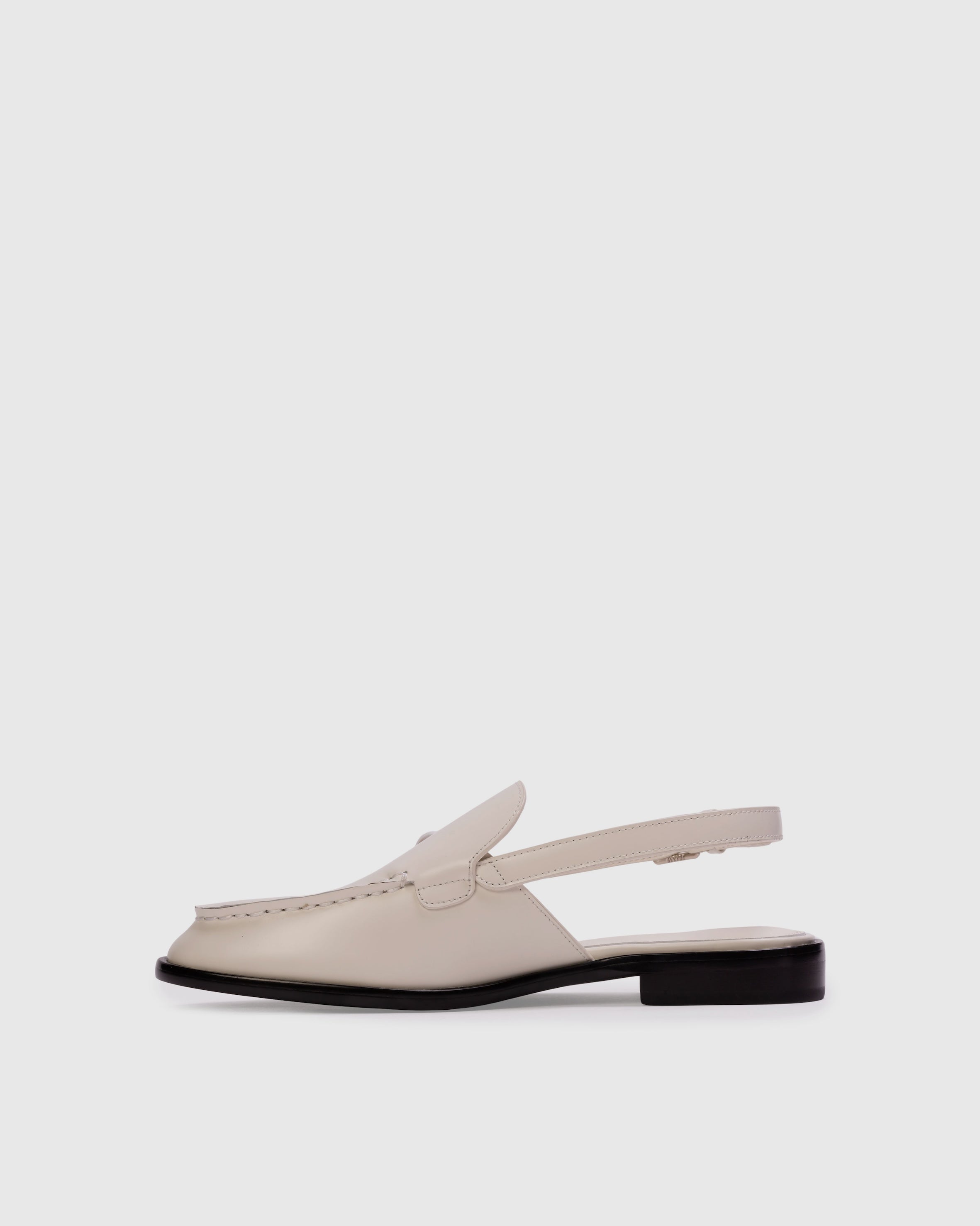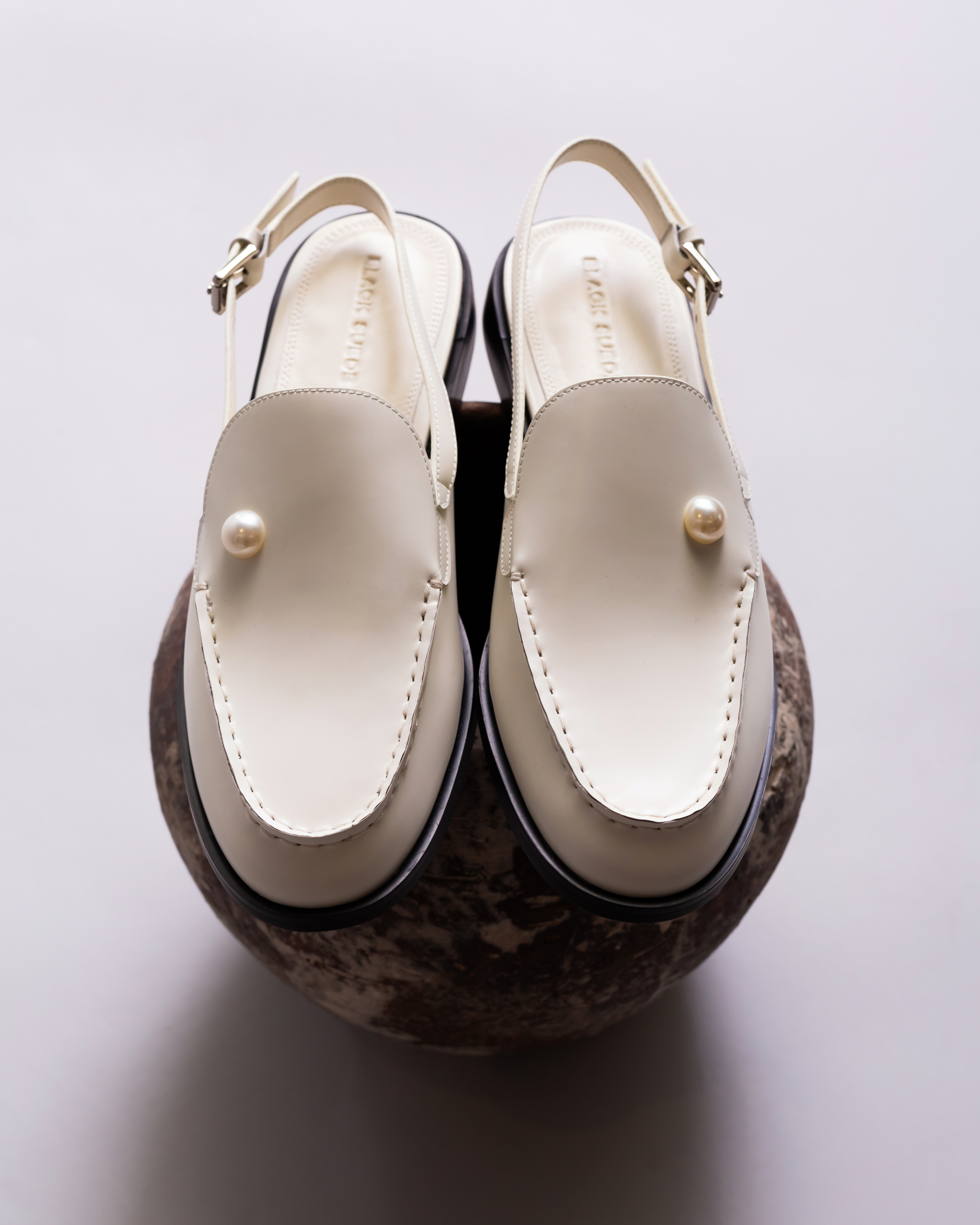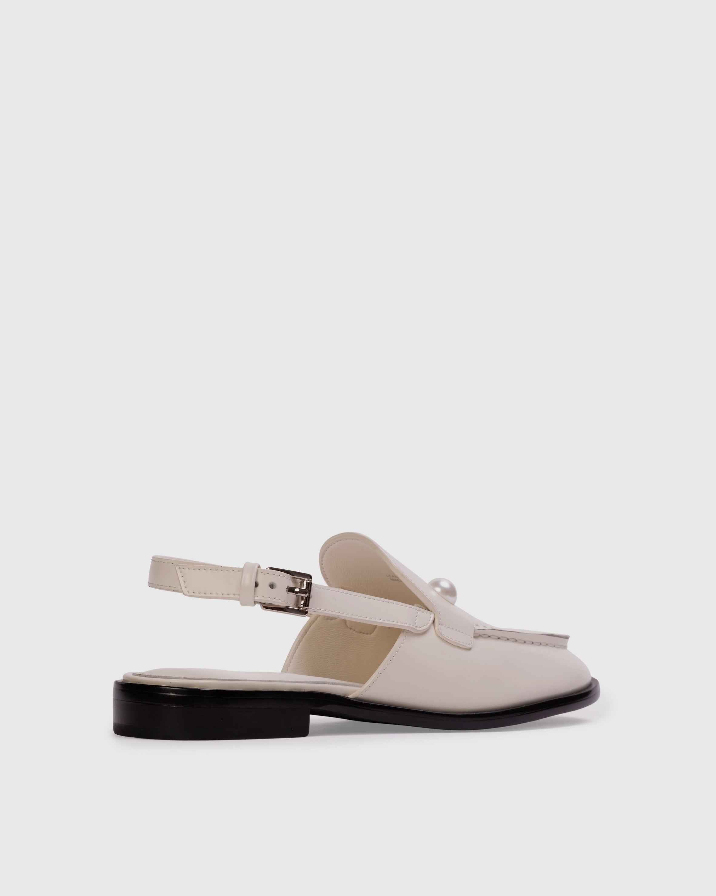 Round-toe slingback loafer with pearl detail, set on a built-up sole. Made with smooth buffed leather.