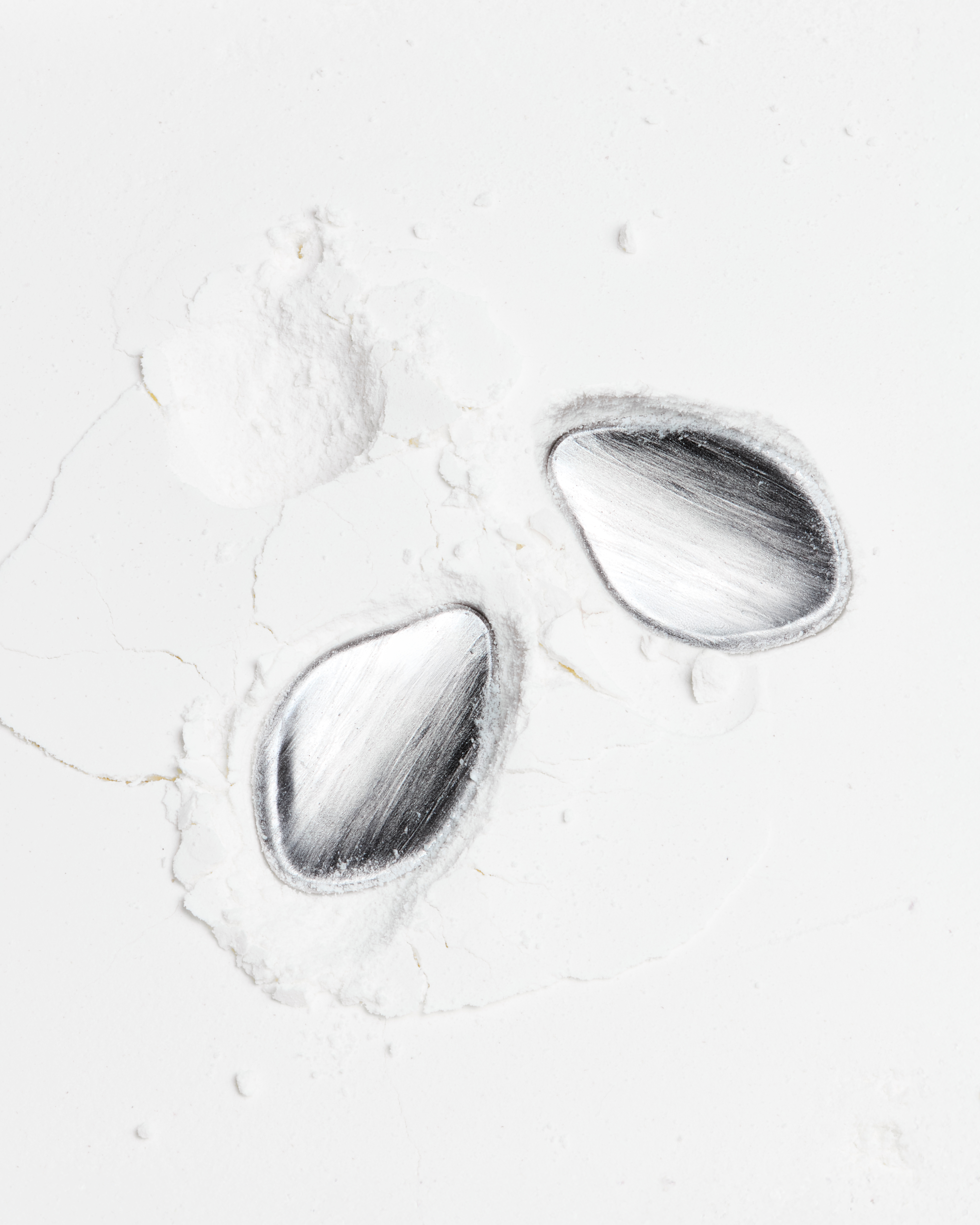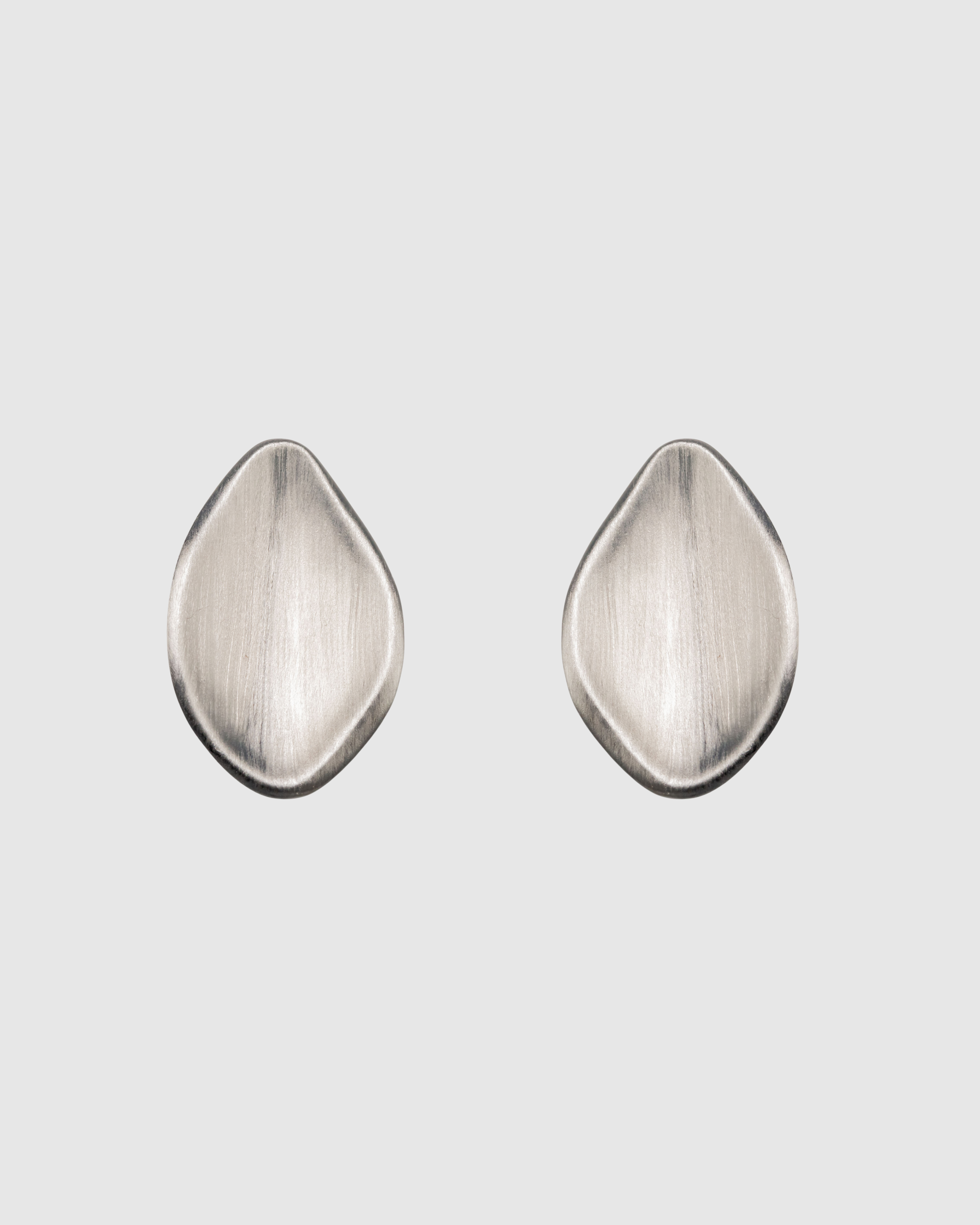 Set of pear shaped earrings with brushed surface. Made with premium rhodium-plated brass.