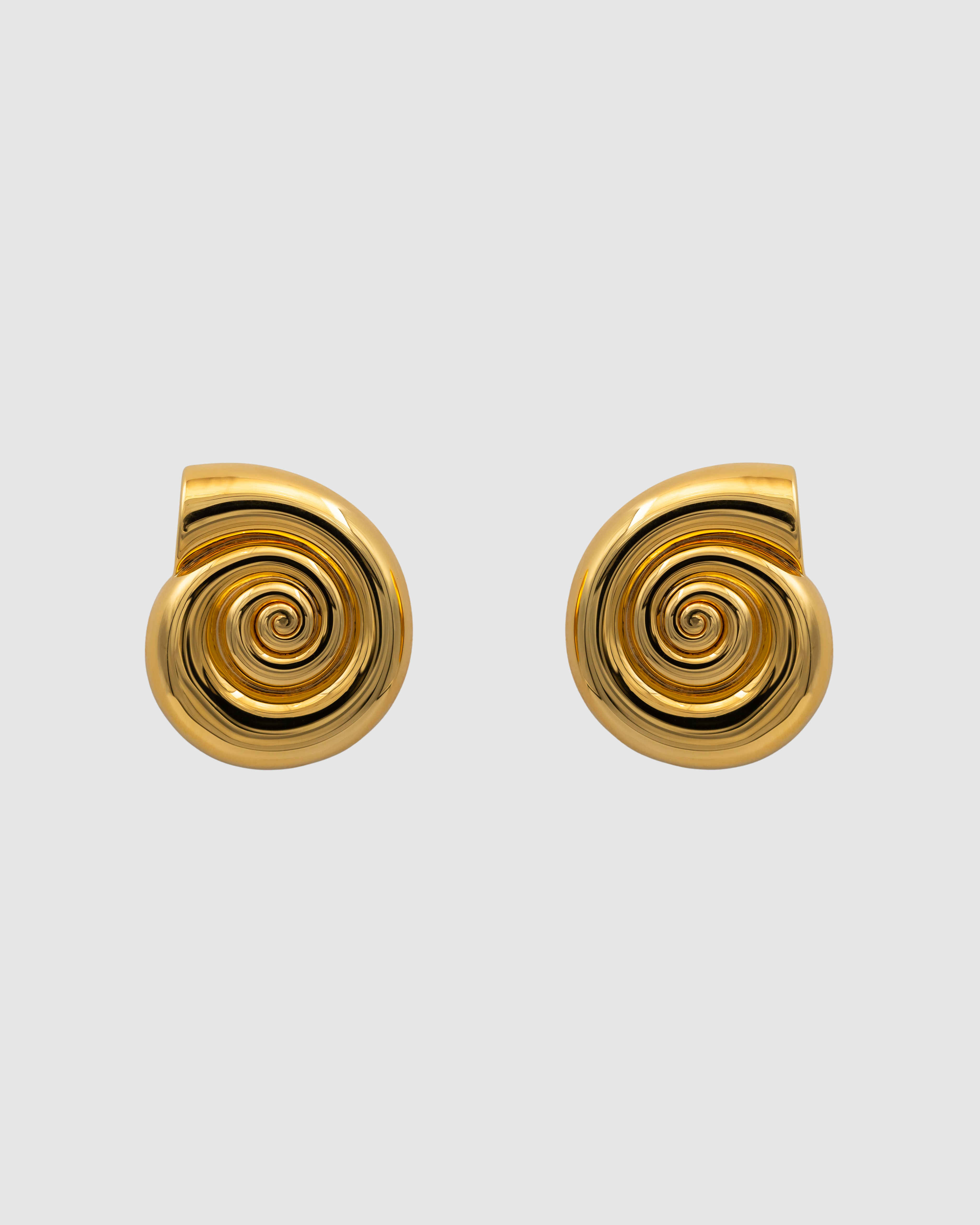Seashell shaped pair of earrings crafted with 18k gold-plated brass. They are lightweight and offer a bold aesthetic for an extra detail to your outfit.