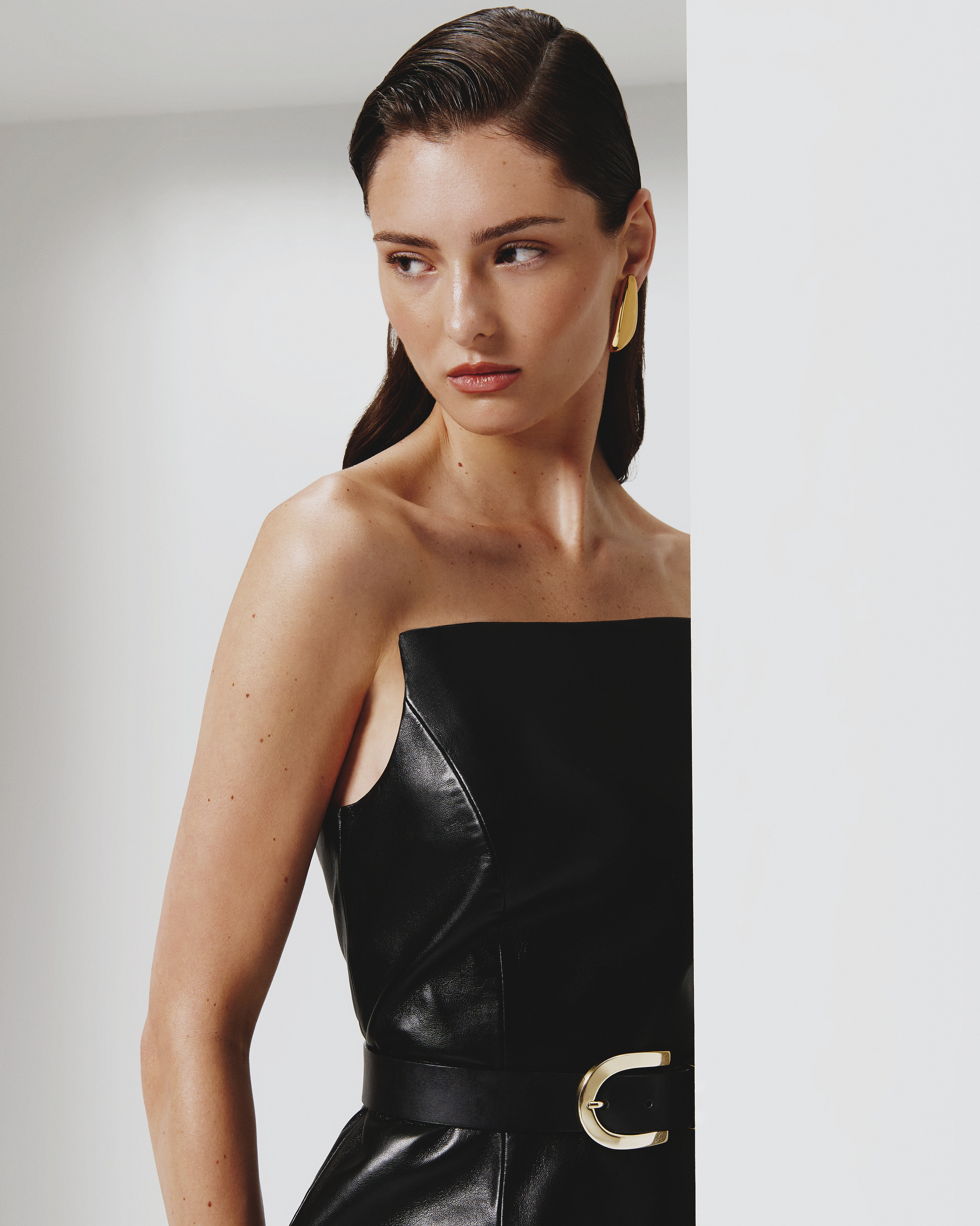 Color + Material: Black leather with 18k gold plated brass hardware.