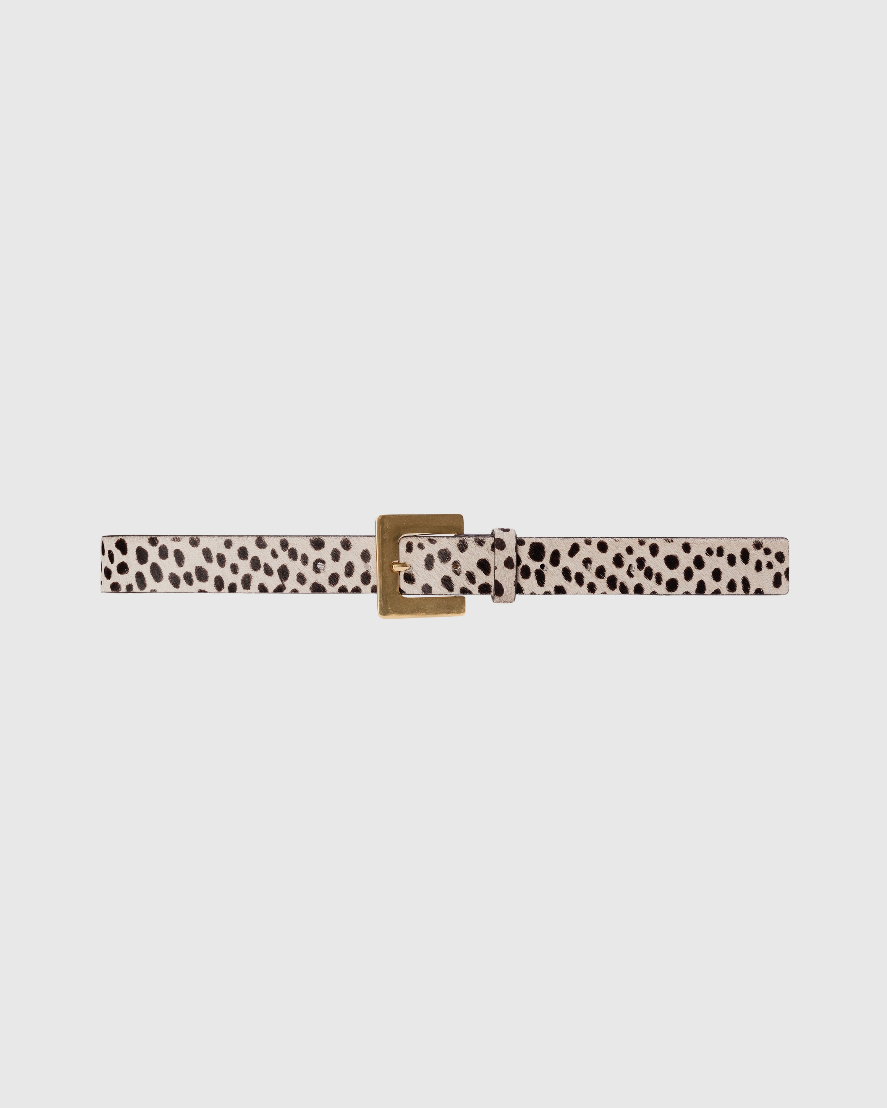 Color + Material: dotted cheetah pony hair with gold plated brass hardware.