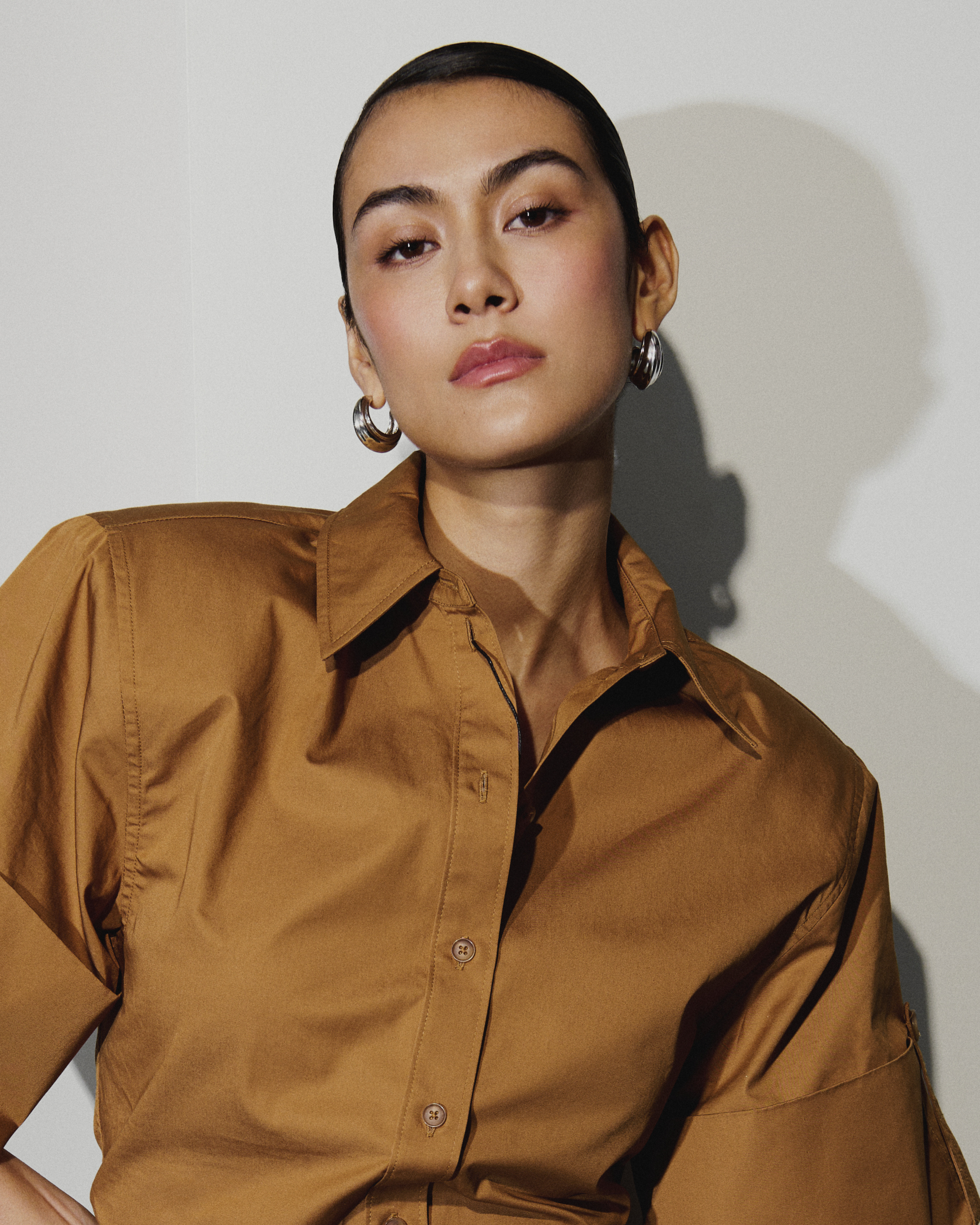 3D effect shaped pair of earrings crafted with rhodium plated brass. These half-moon hoops are lightweight for an all day wearability.