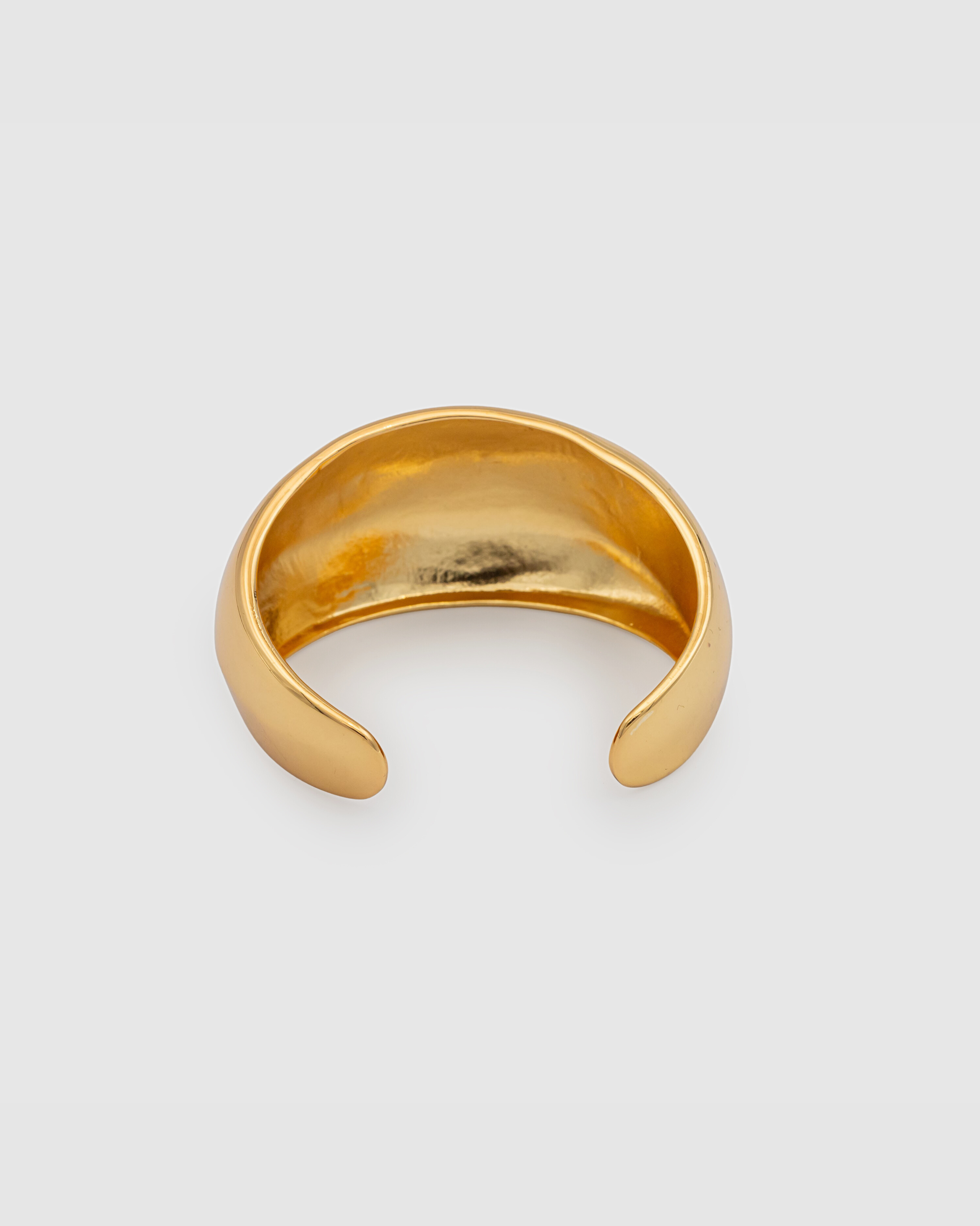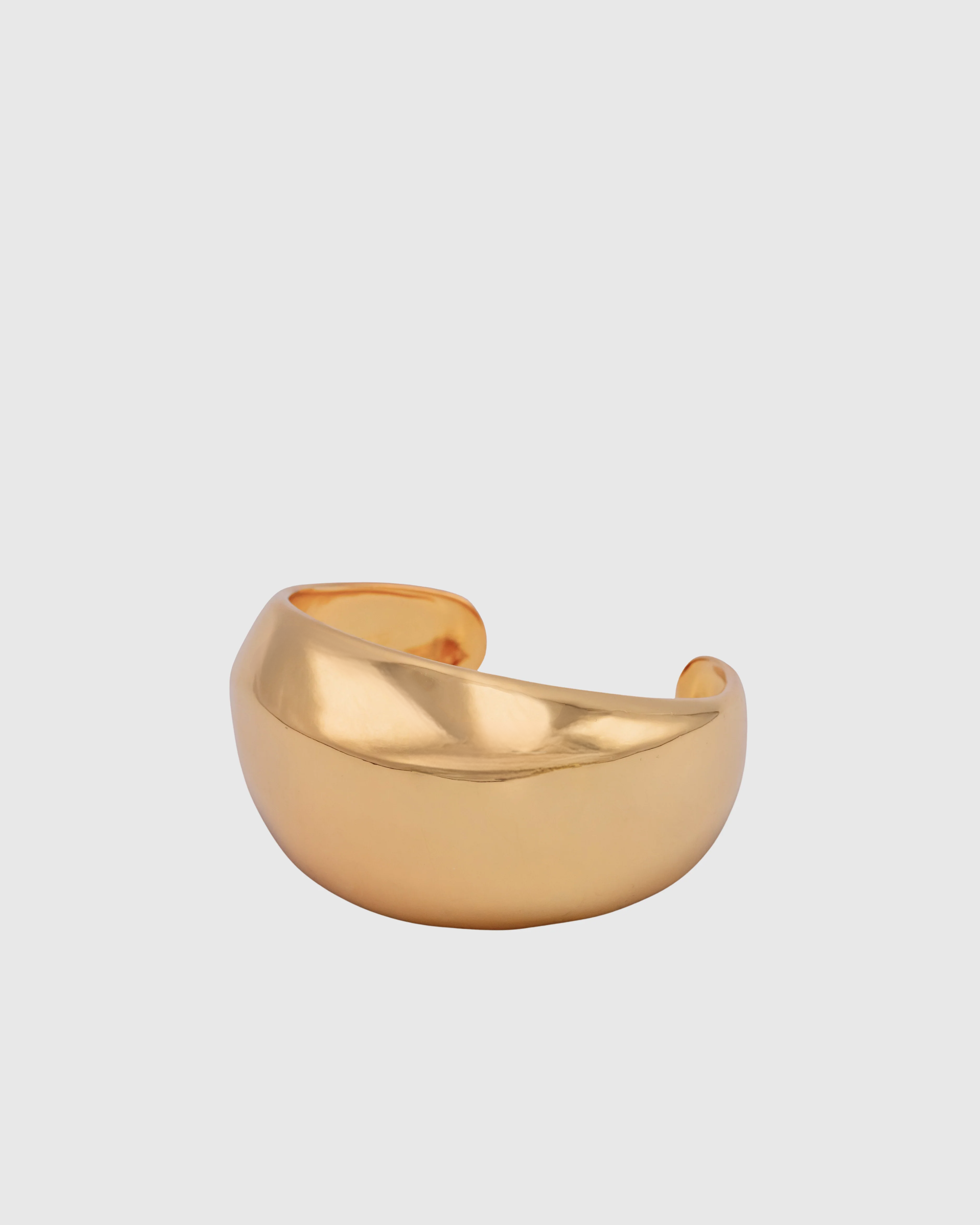 Dome shaped cuff bracelet crafted with 18k gold-plated brass. This unique irregularly shaped cuff offers a versatile styling.